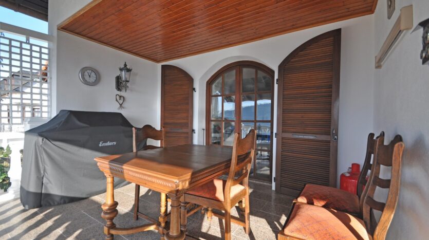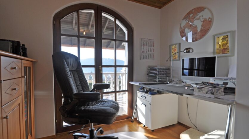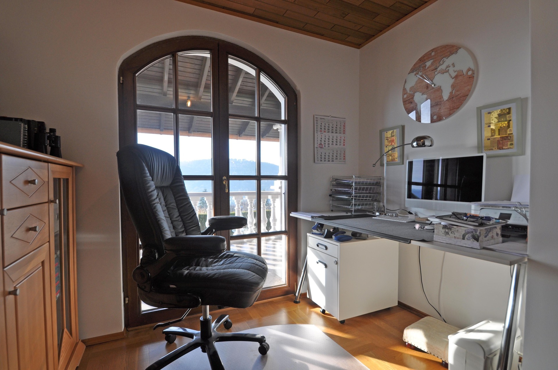 In der Hauptwohnung im Erdgeschoss betreten Sie die Diele. Highlight dieser Etage ist sicherlich das große Wohnzimmer mit Holzofen und Zugang zur Terrasse mit atemberaubendem Weitblick. In das Wohnzimmer integriert ist das Arbeitszimmer. Die Küche dieser Einheit ist ebenfalls großzügig und die Einbauküche bietet viel Arbeitsfläche. Für die Vorräte ist ein Spind vorhanden. Das separaten Esszimmer mit stilvollem Dielenboden wird dank des elektrischen Kaminofens ebenfalls zu einem der begehrtesten Plätze im Haus. Das Schlafzimmer mit Bad en Suit ist der private Rückzugsort für die Eltern. Das Tageslichtbad ist komplett gefliest und bietet zum Entspannen eine Wanne. Das Schlafzimmer bietet neben dem Ankleidezimmer auch einen Zugang zu der Terrasse, welche über eine geschwungene Treppen mit Granitbelag direkt in den Garten führt. Ein Gäste WC rundet das Profil dieser eben harmonisch ab.