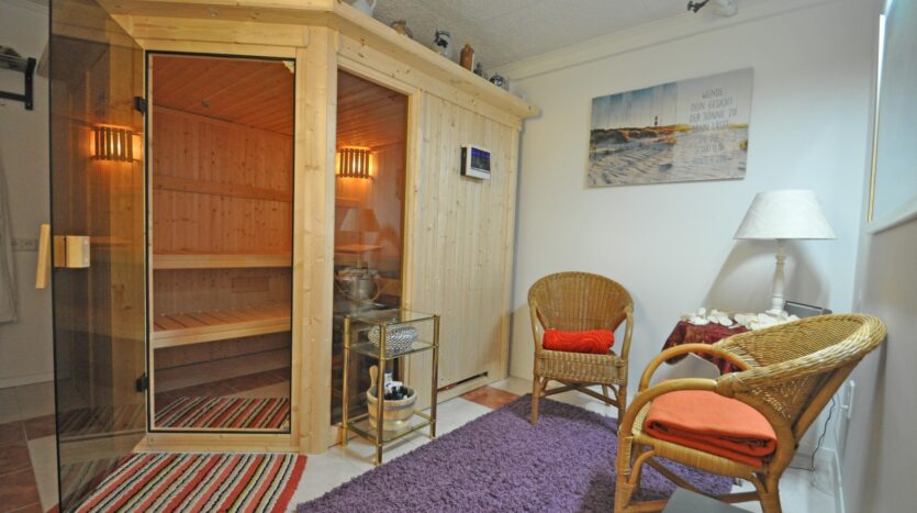 Im Souterrain befindet sich aktuell der Wellnessbereich der Hauptwohnung. Eine Sauna und ein großer Ruheraum mit Holzofen und Zugang zum Garten bieten ideale Voraussetzungen um den Alltag zu vergessen. Ein Teil der Terrasse wurde zum Wintergarten umgenutzt. Unter dem Ruheraum befindet sich noch der ehemalige Pool, welchen die Verkäufer nicht nutzen. Der Boden des Ruheraums steht allerdings nur auf Holzstelzen, sodass ein Rückbau zum Pool mühelos machbar ist. Ein WC sowie ein Bad sind natürlich auch vorhanden. Eine Küche im Souterrain kann aktuell genutzt werden um sich während der Wellnesszeit auch kulinarisch zu verwöhnen. Bei einer Umnutzung des Souterrain zu einer dritten Wohneinheit, sind Küche und Bad schon vorhanden und der Ruheraum könnte zum Wohnzimmer und die Sauna zum Schlafzimmer umfunktioniert werden. Der historische Heizungskeller dient als Lager und Abstellraum. Weiterhin sind das alte Heizöllager und zwei weitere große Kellerräume vorhanden. Aus einem dieser großen Kellerräume erreichen Sie auch die große Doppelgarage. Abgerundet wird das Souterrain durch den Waschkeller, in dem die Waschmaschinen der Haupt- und Dachgeschosswohnung stehen.