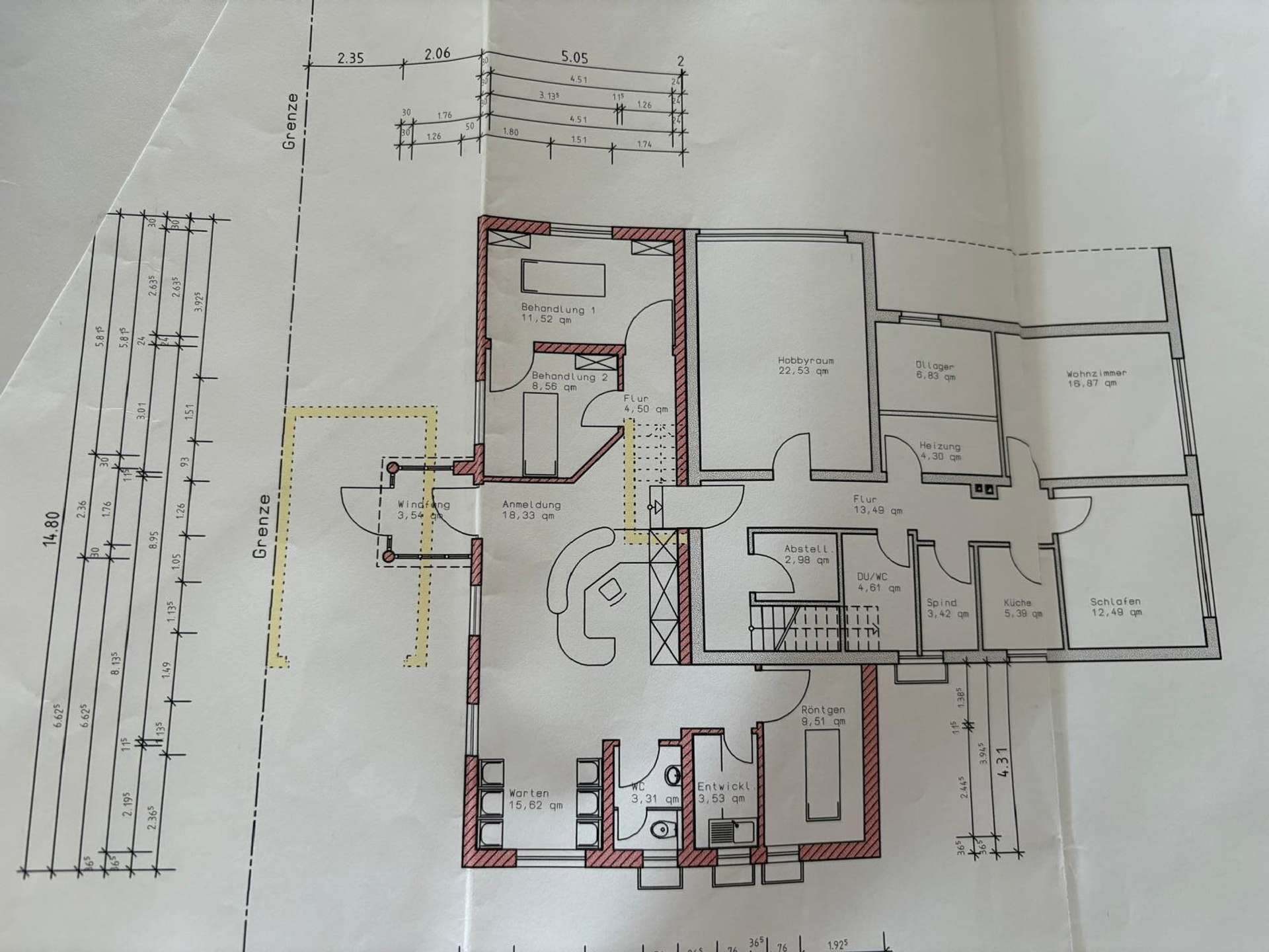 Die Einliegerwohnung im Erdgeschoss (ca. 150 m²) wurde ursprünglich als Praxis genutzt und später zu vollwertigem Wohnraum umgebaut. Sie ist derzeit für 560€ kalt vermietet. Die Wohnung verfügt über 6 Zimmer, eine Küche und ein Bad, und lässt sich bequem über einen seitlich verlaufenden Pfad separat betreten – optimal für Gäste, Mieter oder Familienangehörige.