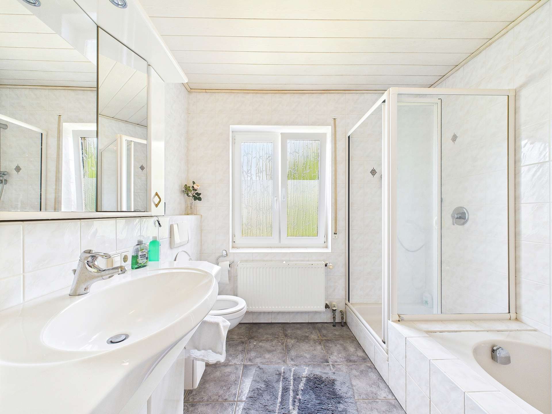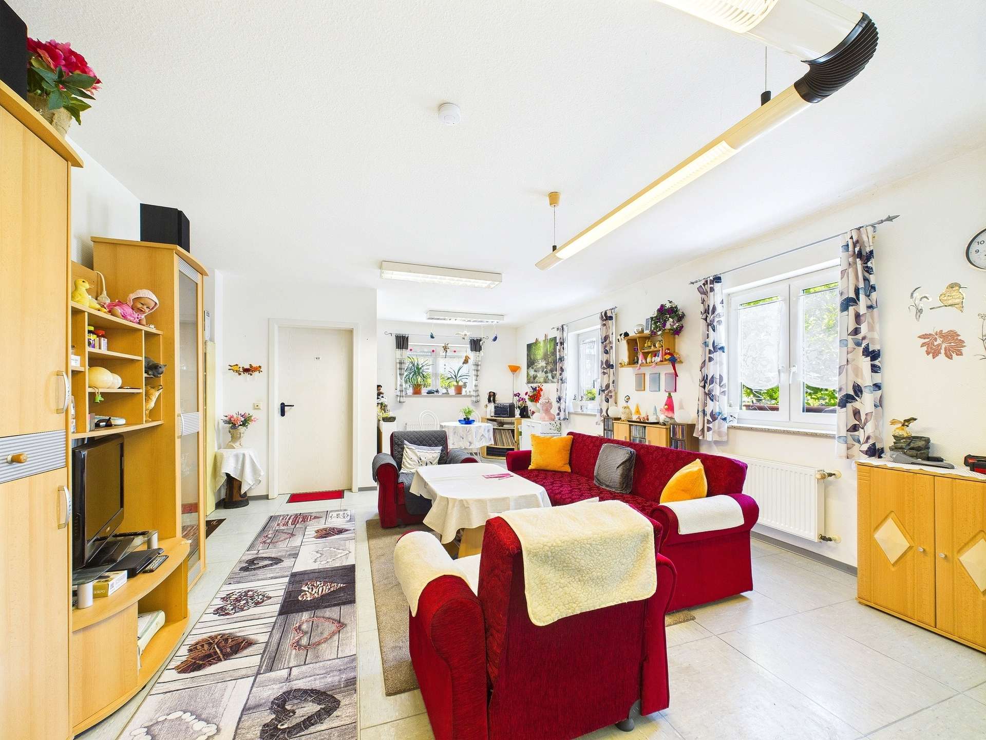 Die Elektrik sowie die Wasserleitungen stammen aus den jeweiligen Bauphasen und spiegeln den damaligen Stand der Technik wider. Beheizt wird das Haus über eine Gas-Zentralheizung aus dem Jahr 2000, die zuverlässig für wohlige Wärme sorgt.