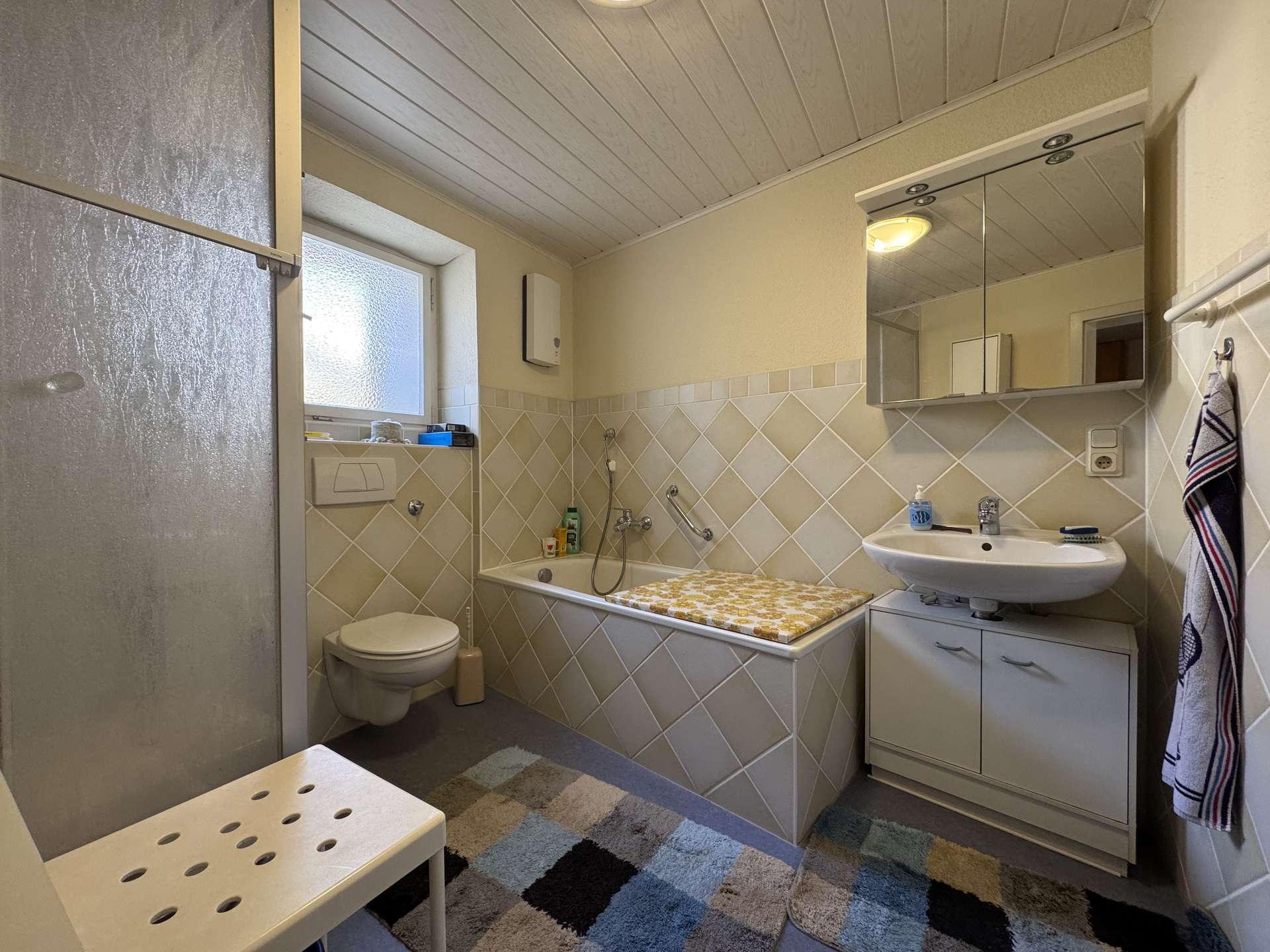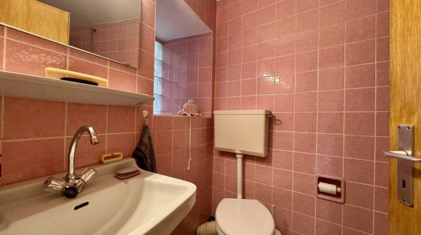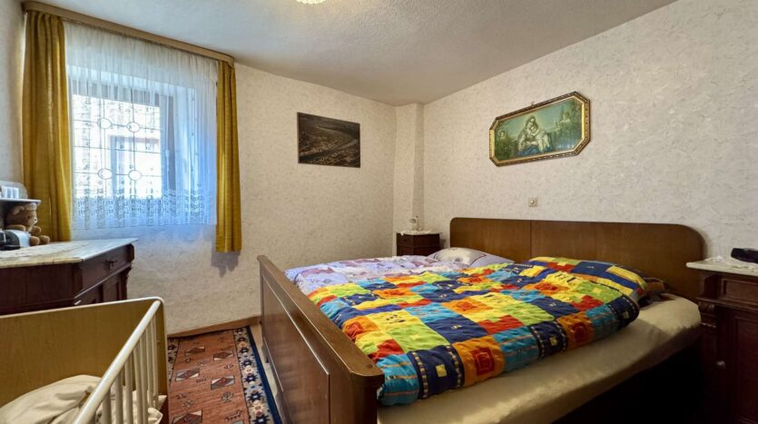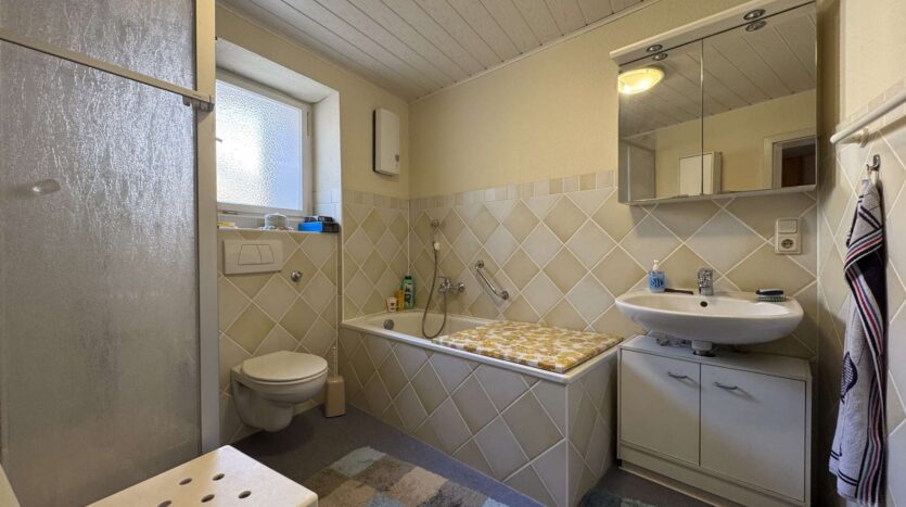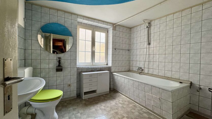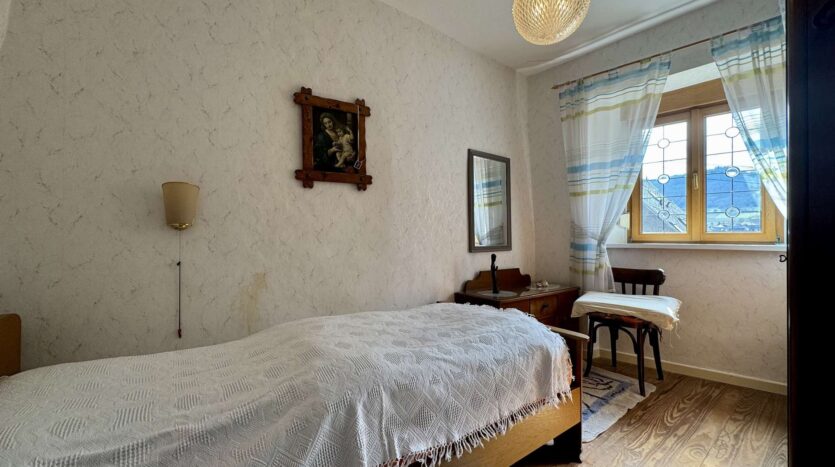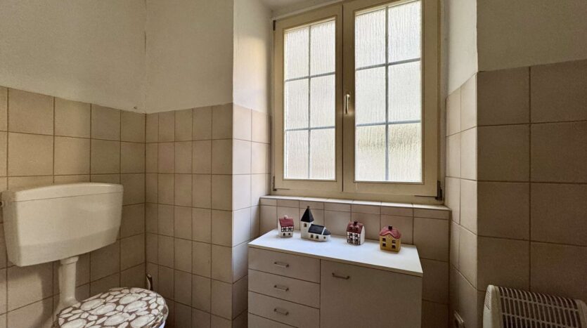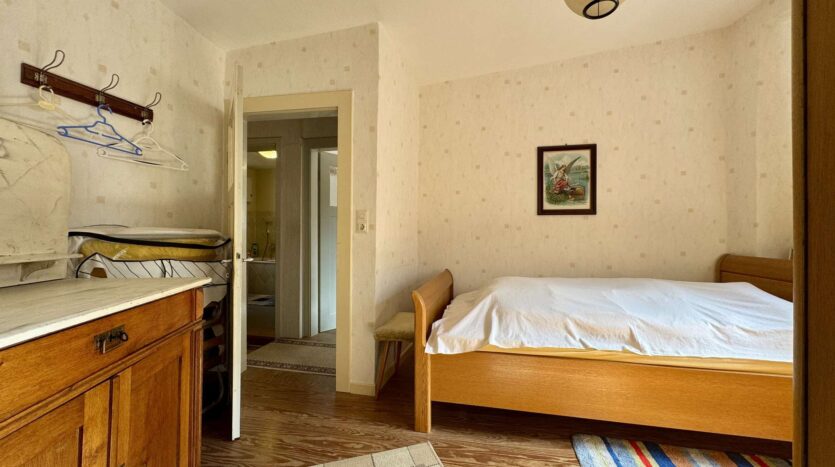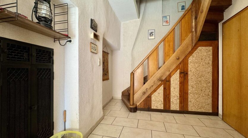 Im Erdgeschoss befinden sich ein einladender Eingangsbereich mit angrenzendem Küchen- und Wohnbereich sowie ein WC. Eine wunderschön erhaltene Holztreppe führt Sie in das erste Obergeschoss, das mit drei Zimmern und einem Badezimmer ausgestattet ist.