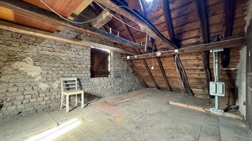 Eine rustikale Holztreppe führt Sie in das Obergeschoss, wo ein Badezimmer mit Dusche und WC, sowie vier individuell nutzbare Schlafzimmer auf Sie warten. Über eine weitere Treppe gelangen Sie in das ausbaufähige Dachgeschoss, das je nach Bedarf und behördlicher Genehmigung zusätzliche Wohnfläche bietet. Von hier aus haben Sie Zugang zu einer charmanten Terrasse, die mit ihrem Ausblick und ihrer Ruhe ideale Voraussetzungen für entspannte Abende schafft.