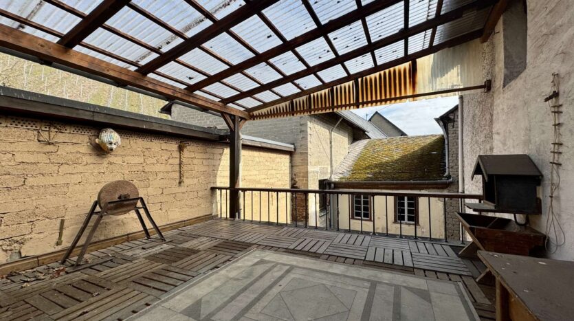 Das Nebengebäude verfügt über 3 Etagen und nach hinten über eine Garage und einen kleinen Garten.