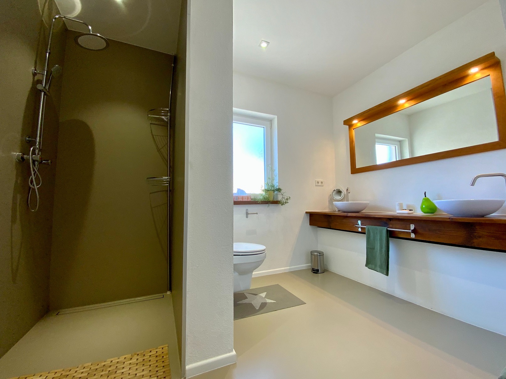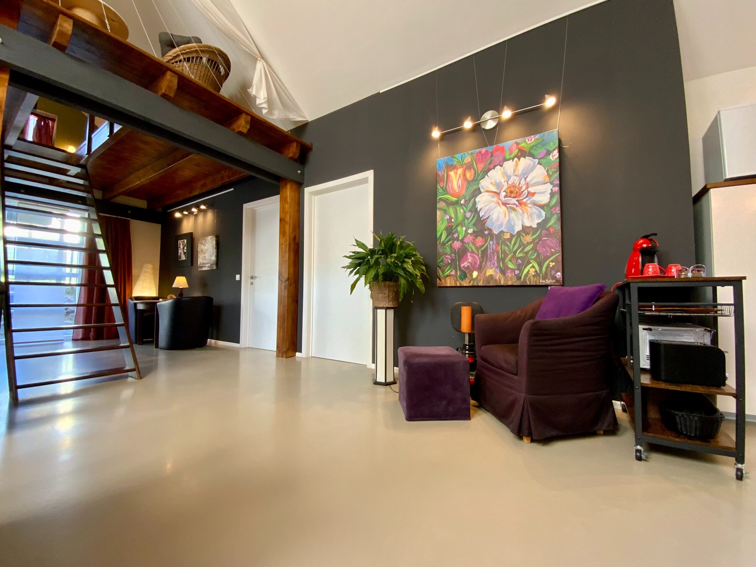 Die Böden des EG und OG bestehen aus fugenlosen Designerböden.