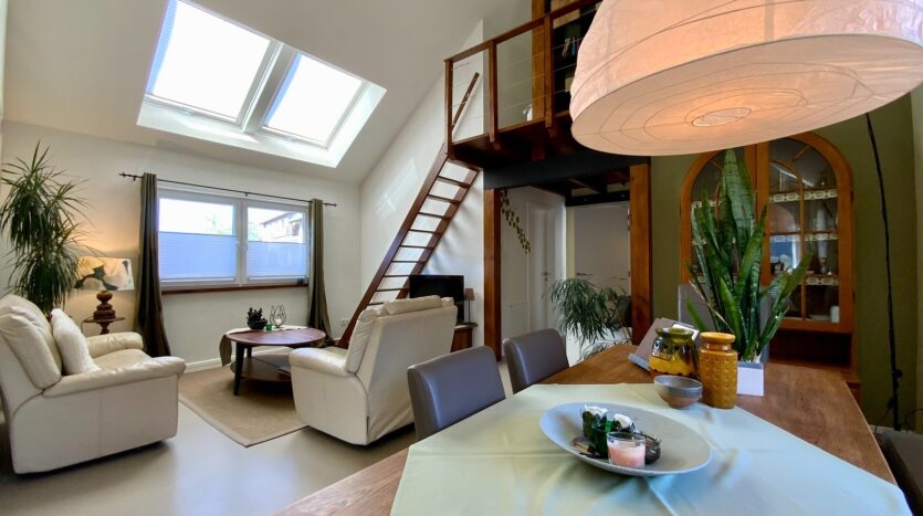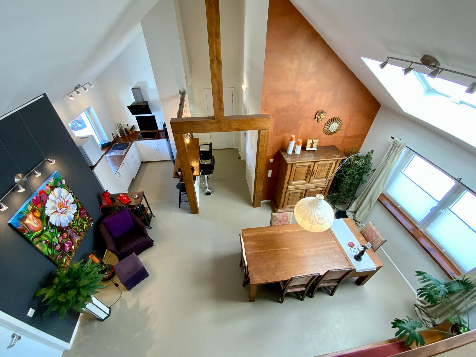 Die Geschossdecken bestehen aus neuen Betondecken und die Räume sind bis unter das Dach sehr offen gestaltet und bringen eine traumhafte Atmosphäre ins Haus.
