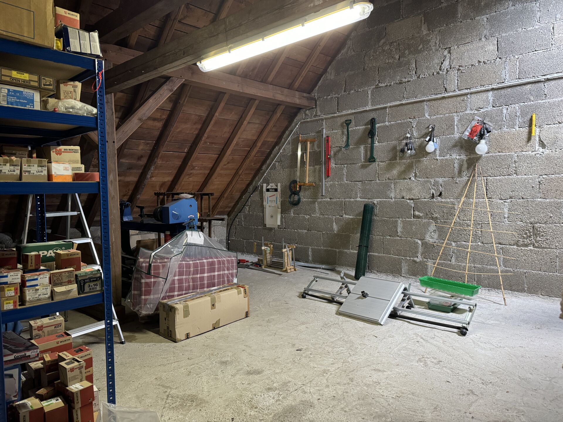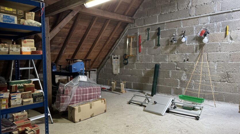 De zolder is gedeeltelijk afgewerkt en biedt een bergzolder met uitbreidingsmogelijkheden, wat volop mogelijkheden biedt voor extra woonruimte. Deze ruimte kan verder worden uitgebreid om extra woonruimte te creëren of indien nodig voor andere doeleinden worden gebruikt.