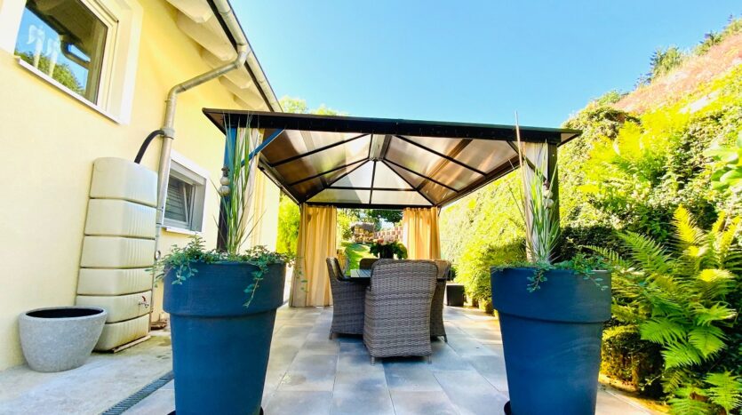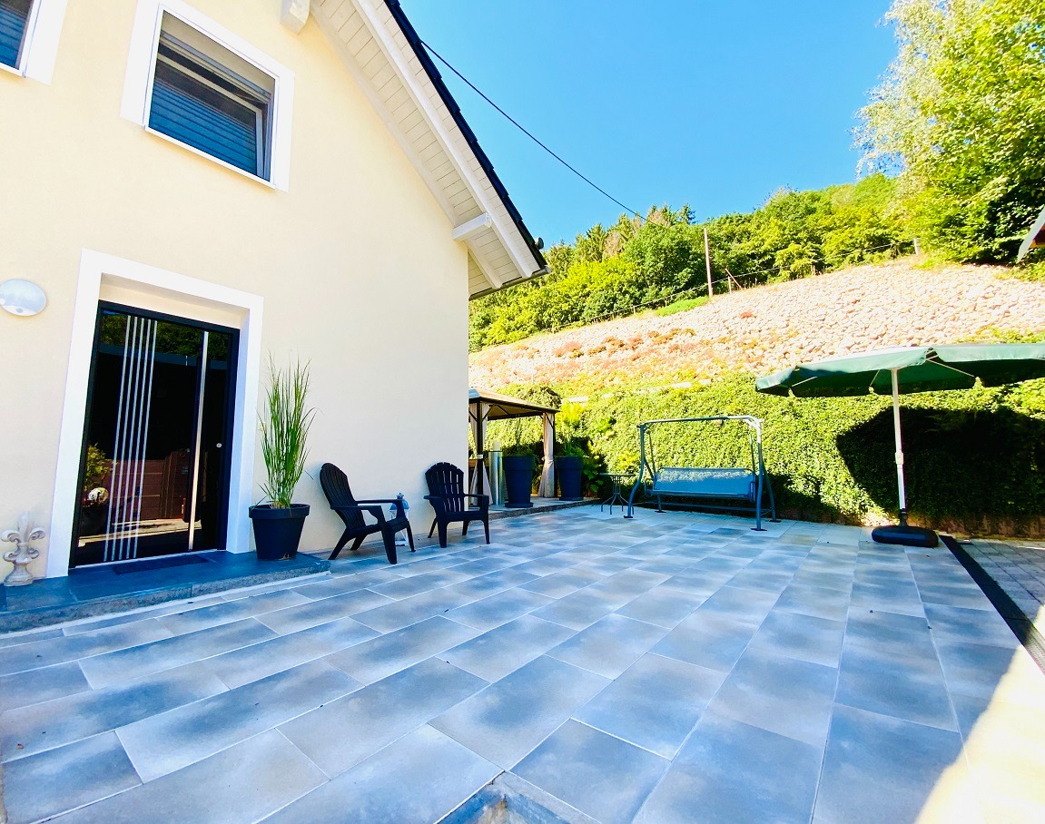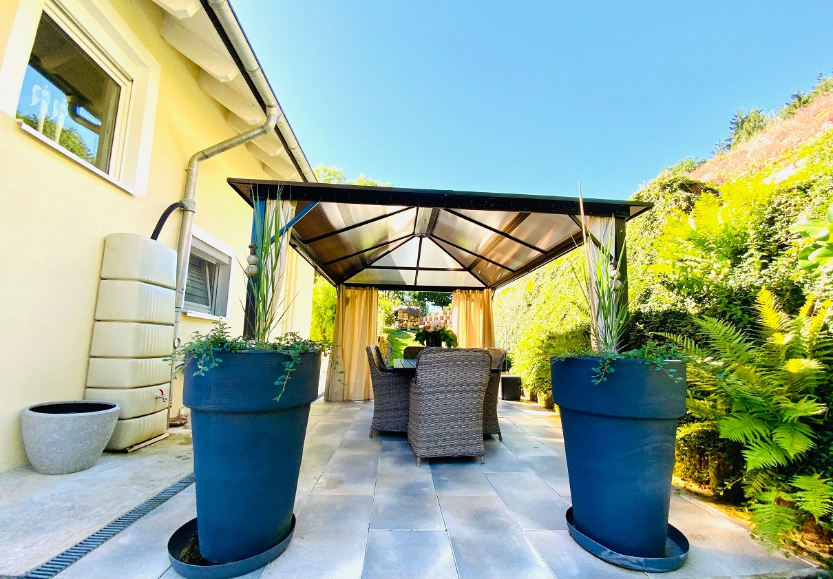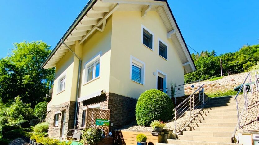 Zeer goed onderhouden en hoogwaardig gerenoveerde eengezinswoning met extra appartement, 2 parkeerplaatsen te koop op fraai aangelegd perceel van ca. 2100 m² met privacy, diverse terrassen waar u de hele dag van de zon kunt genieten, op een zeer rustige buitenwijklocatie in Kopp.