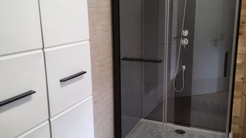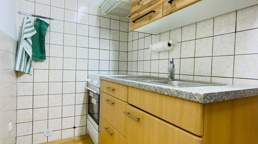 Hier bevindt zich een keuken, gezellige woonkamer, badkamer en een hele mooie slaapkamer.