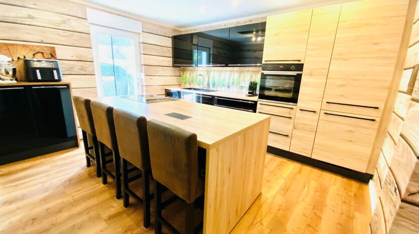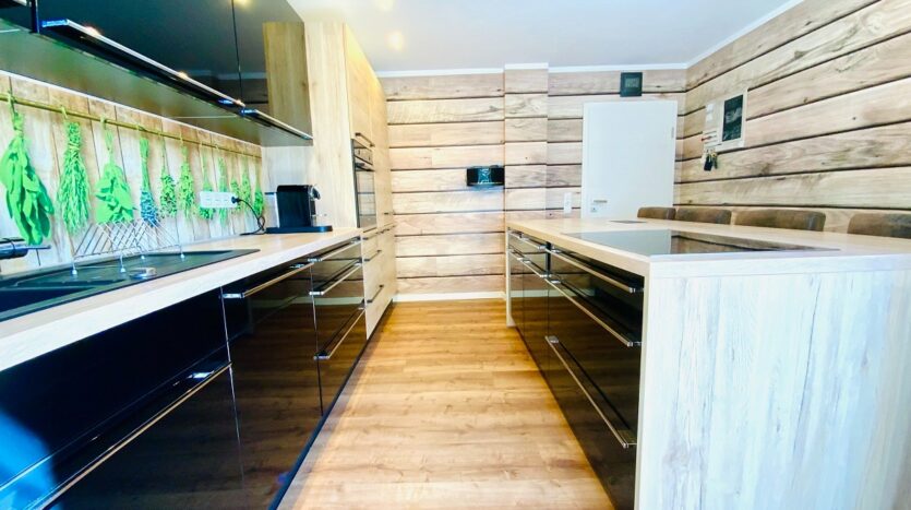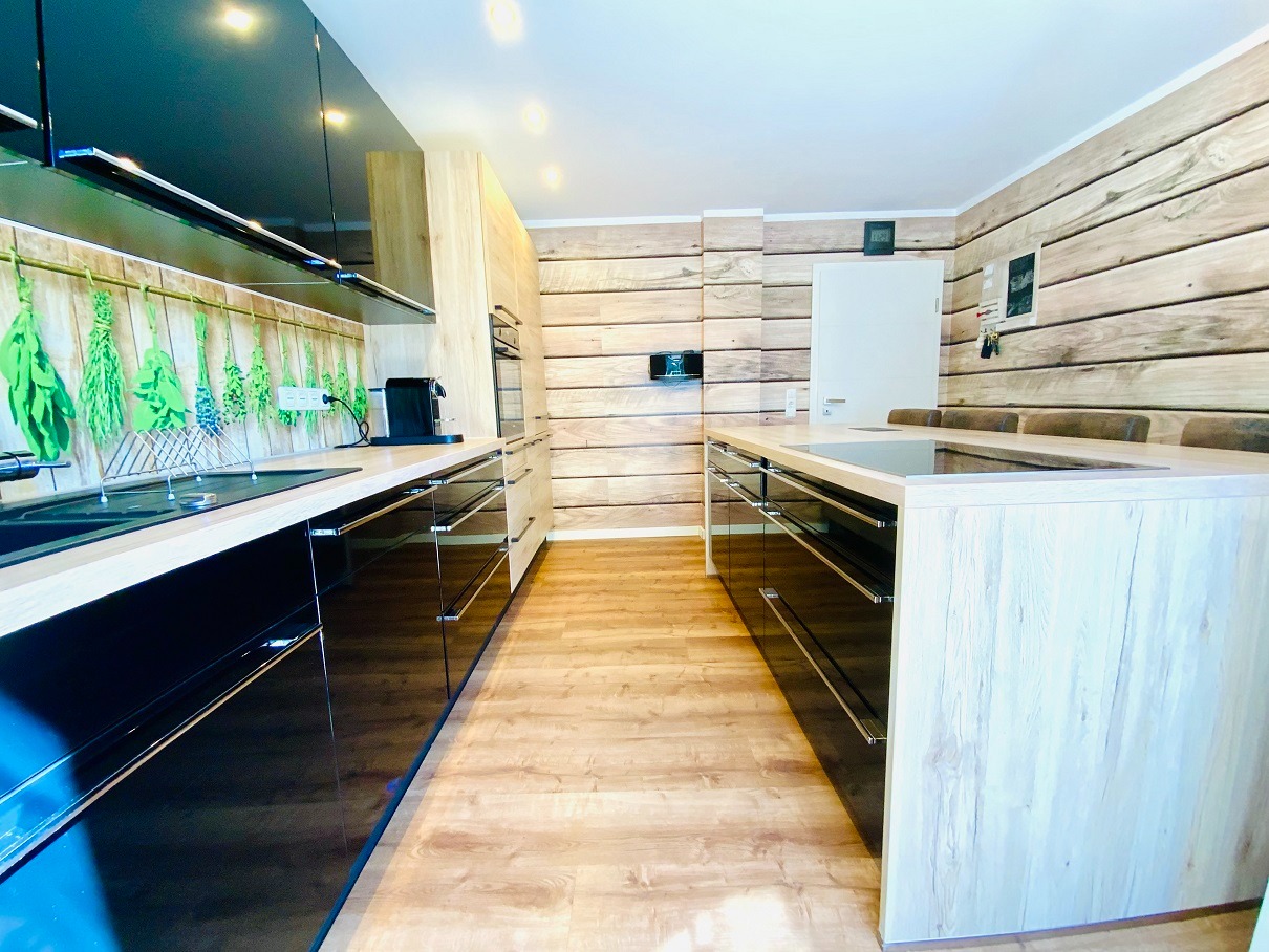 Am Ende des Flurs gelangt man in eine hochwertige exklusive Einbauküche mit Kochinsel. Hier ist an nichts gespart worden! Von der Küche hat man ebenfalls einen Zugang zur Terrasse auf der Südwest Seite.