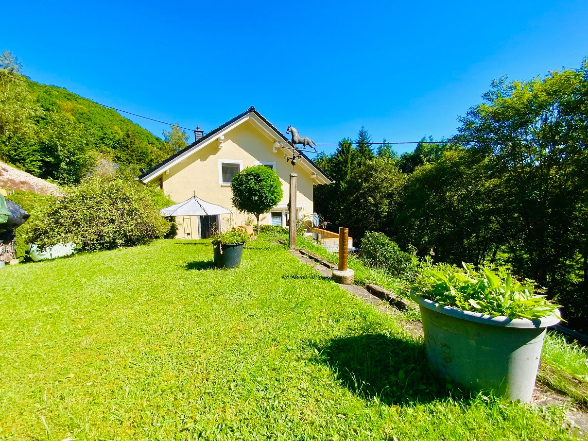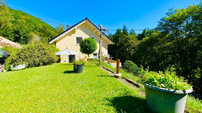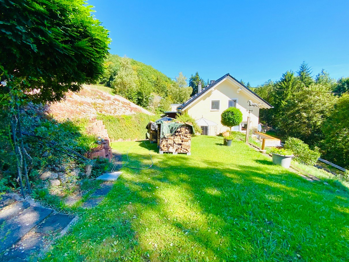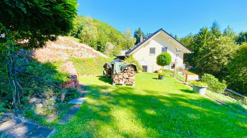 Das sehr gut gepflegte und renovierte Einfamilienhaus befindet sich auf einem Grundstück von ca. 2100 m². Hinter dem Haus befinden sich mehrere Terrassen, der Garten und eine Wiese für z. B. Tierhaltung. Das Haus liegt in ruhiger Ortsrandlage mit Blick ins Grüne.