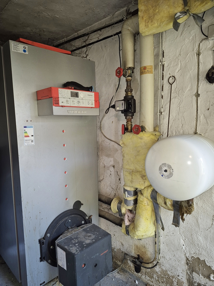 Die Dacheindeckung besteht aus Naturschiefer, der auf dem Haupthaus 2012 nach einem Hagelschaden erneuert wurde und auf dem Anbau/Scheunenteil noch gut erhalten ist. Beheizt wird das Objekt durch eine Öl-Zentralheizung Fa. Viessmann Baujahr 1998.