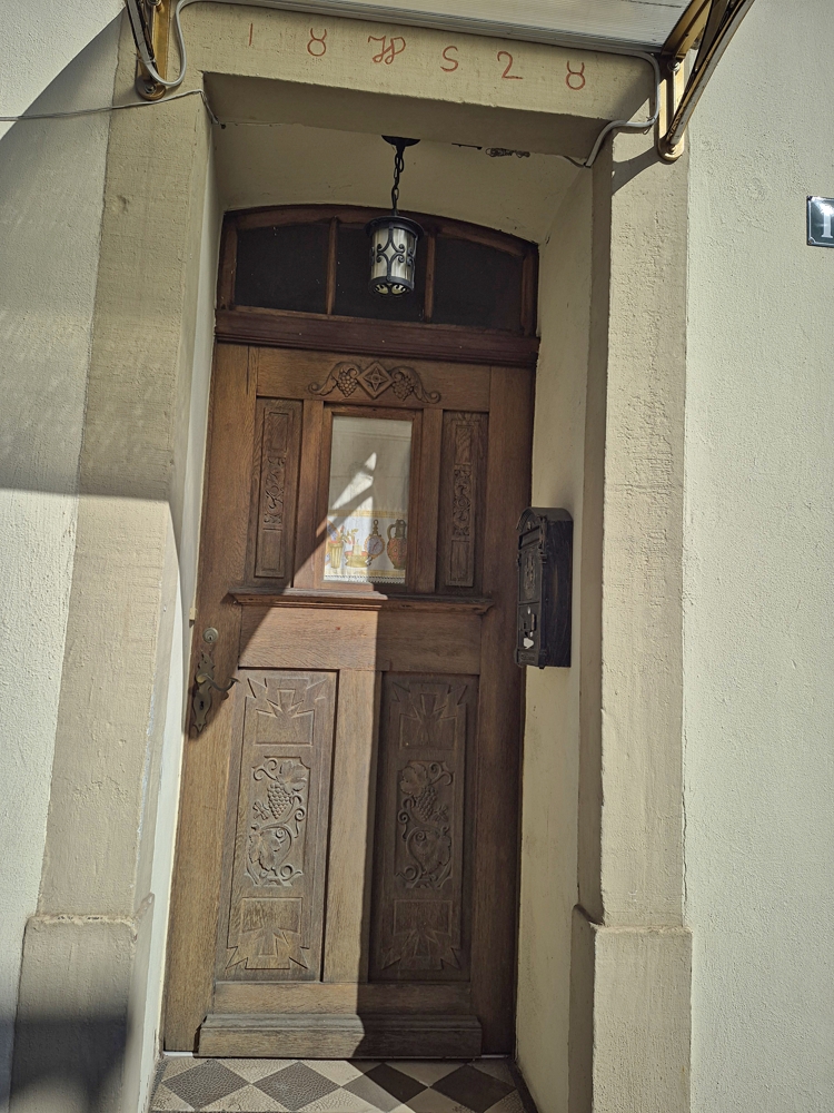 Der Innenhof bietet genügend Raum für einen Stellplatz und einen überdachten Freisitz. Von dort aus gelangt man ebenfalls in den Gewölbekeller und verschiedene Räume im Bereich des ehemaligen Stall- und Winzerbereichs, in dem Werkstatt, Heizungsraum mit Öllager und die ehemaligen Toilettenanlagen untergebracht sind. Ein weiterer Stellplatz befindet sich auf dem eigenen Grundstück ein dritter Stellplatz ist aktuell noch auf dem Nachbargrundstück angemietet.
