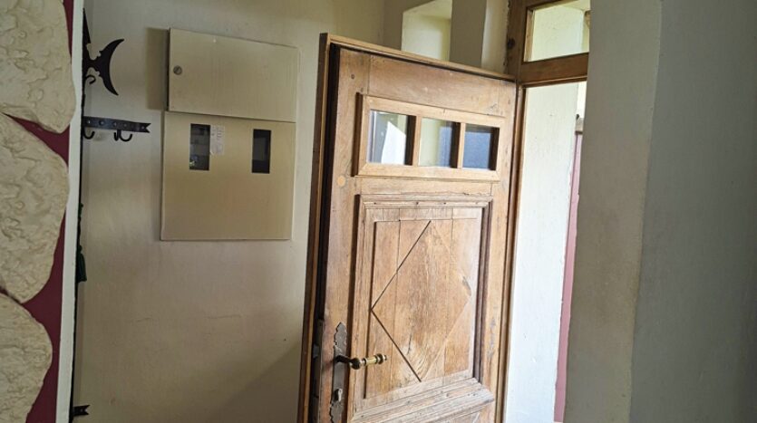 Via de hoofdingang en de goed bewaarde houten trap bereikt u de bovenverdieping. Hier zijn reeds een open woonkamer, een keuken, drie slaapkamers en een badkamer gerealiseerd. Op zolder zijn nog twee ongebruikte zolderkamers beschikbaar als uitbreidingsreserve en verdere bruikbare ruimte die nog uitgebreid kan worden. In het bijgebouw is er bovendien een uitbreidingsmogelijkheid op de eerste verdieping, die nog niet is benut.