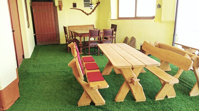 De binnenplaats biedt voldoende ruimte voor een parkeerplaats en een overdekte zithoek. Vanaf daar heeft u ook toegang tot de gewelfde kelder en verschillende ruimtes in het voormalige stallen- en wijnbouwgedeelte, waar zich de werkplaats, de stookruimte met olieopslag en het voormalige toiletgebouw bevinden. Er is nog een parkeerplaats op ons eigen terrein en momenteel is er een derde parkeerplaats gehuurd op het aangrenzende terrein.