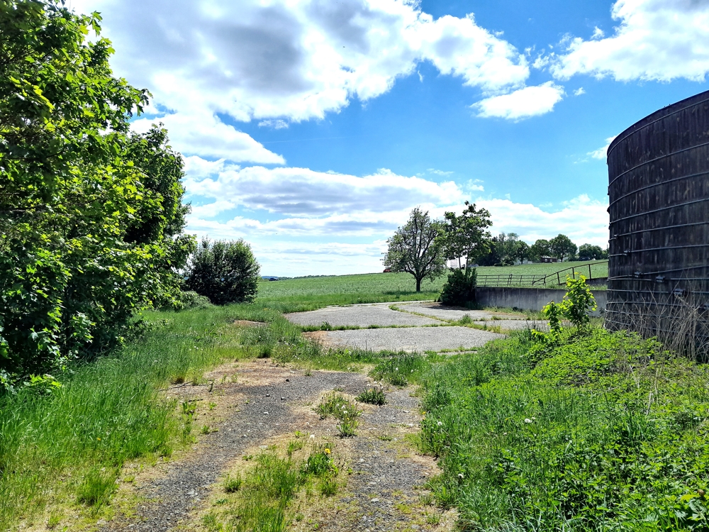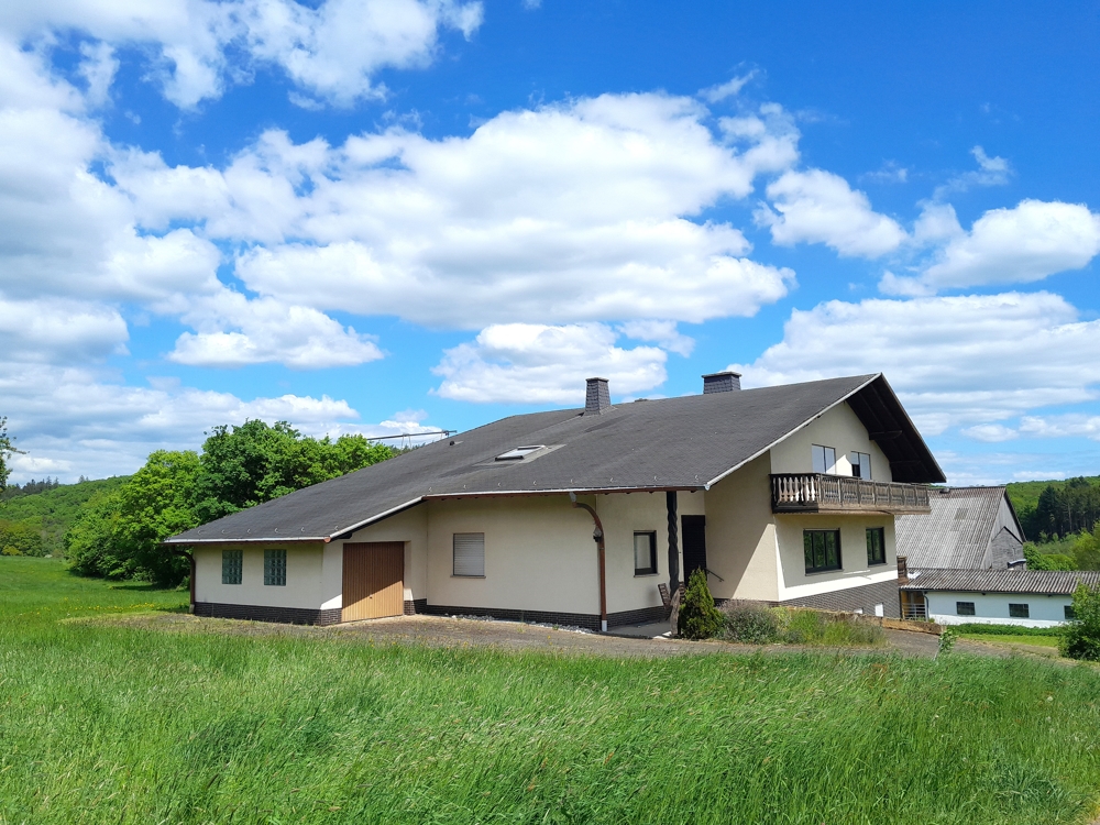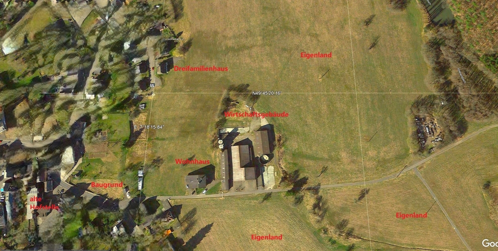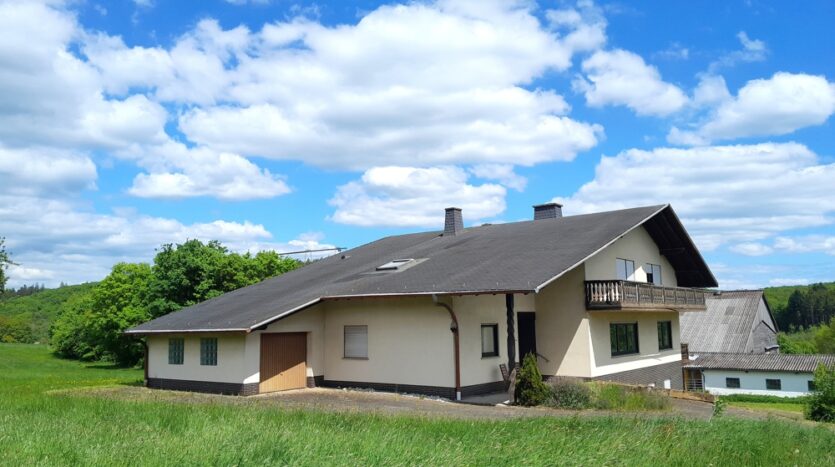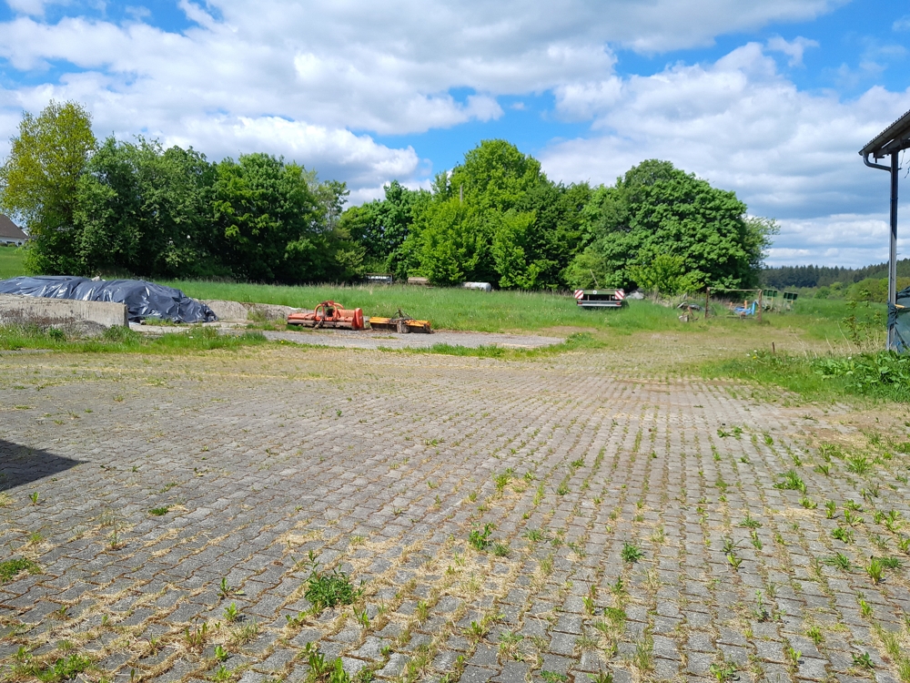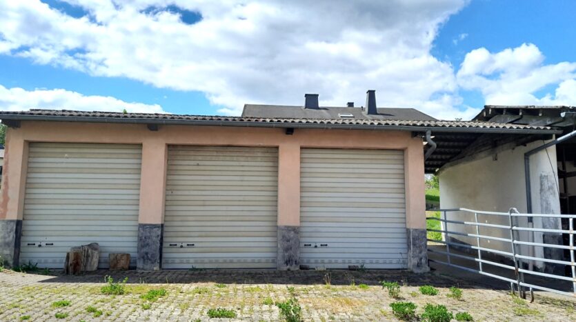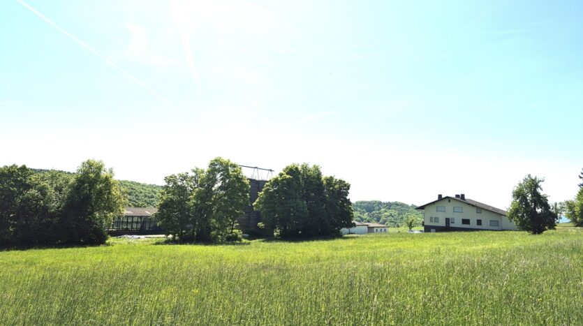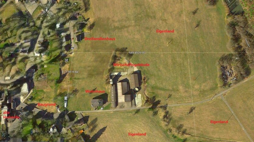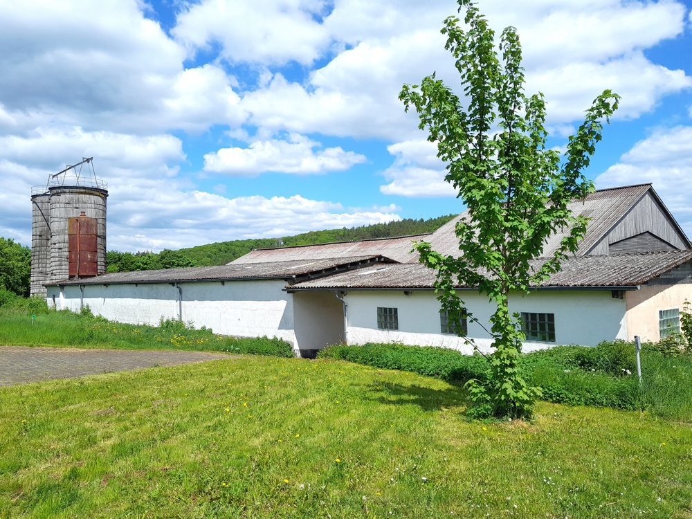 – Einfamilienhaus Baujahr 1985 nebst landwirtschaftlicher Hofstelle (Boxenlaufstall, Bergehalle 15 x 30 Meter, Siloanlagen, Werkstatt, Maschinenhalle 15 × 30 Meter, befestigte Außenflächen usw.)