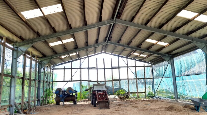 – Vrijstaande woning gebouwd in 1985 met landbouwbedrijf (boxenstal, opslaghal 15 x 30 meter, silo-inrichting, werkplaats, machinehal 15 x 30 meter, verharde buitenruimte, etc.)