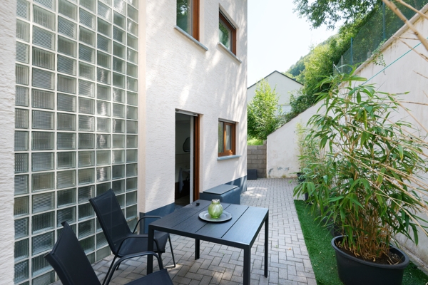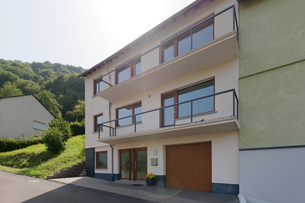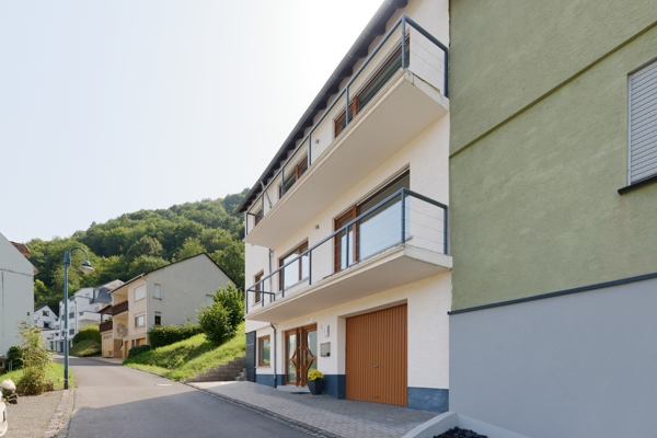 De keuken is modern en goed uitgerust; de woon- en eetkamer bieden toegang tot een zonnig balkon met uitzicht op de Moezel en het dorp. De slaapkamers zijn rustig en comfortabel ingericht en de badkamer is voorzien van tijdloze armaturen en een inloopdouche. Extra’s zoals een praktische berging naast de keuken, een aparte wasruimte en het terras op de eerste verdieping verhogen het wooncomfort.