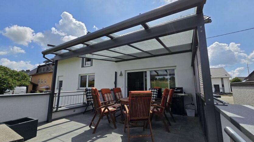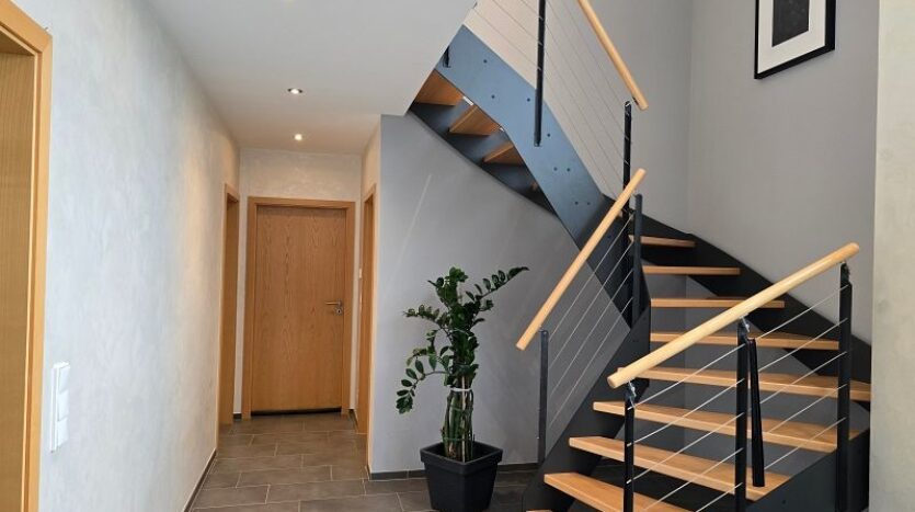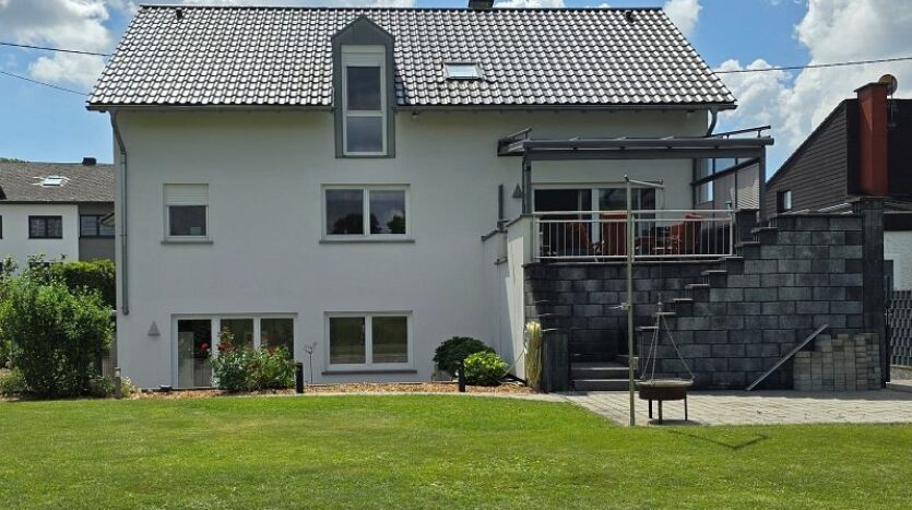 Das äußerst hochwertig ausgestattet Wohnhaus wurde in Massivbauweise errichtet und steht in dem sehr gepflegten und beliebten Eifelort Eisenach. Durch die nur ca. vier Kilometer entfernte Bundesstraße B 51 und die schnell erreichbare Autobahn, genießt Eisenach eine perfekte Anbindung in die Nachbarregionen und Städte wie Luxemburg – Trier – Bitburg und in alle anderen Richtungen. Aufgrund der direkten Nähe zu Luxemburg ist Eisenach auch bei Lux-Pendlern äußerst beliebt.