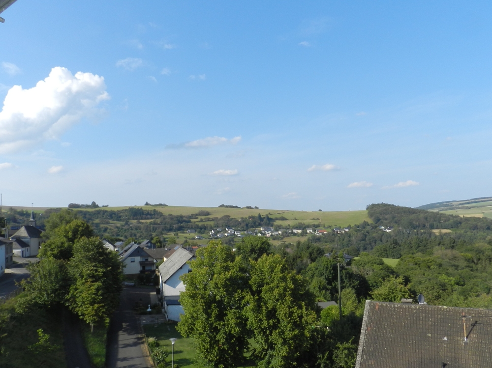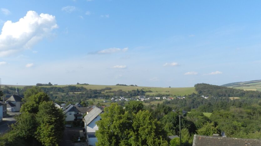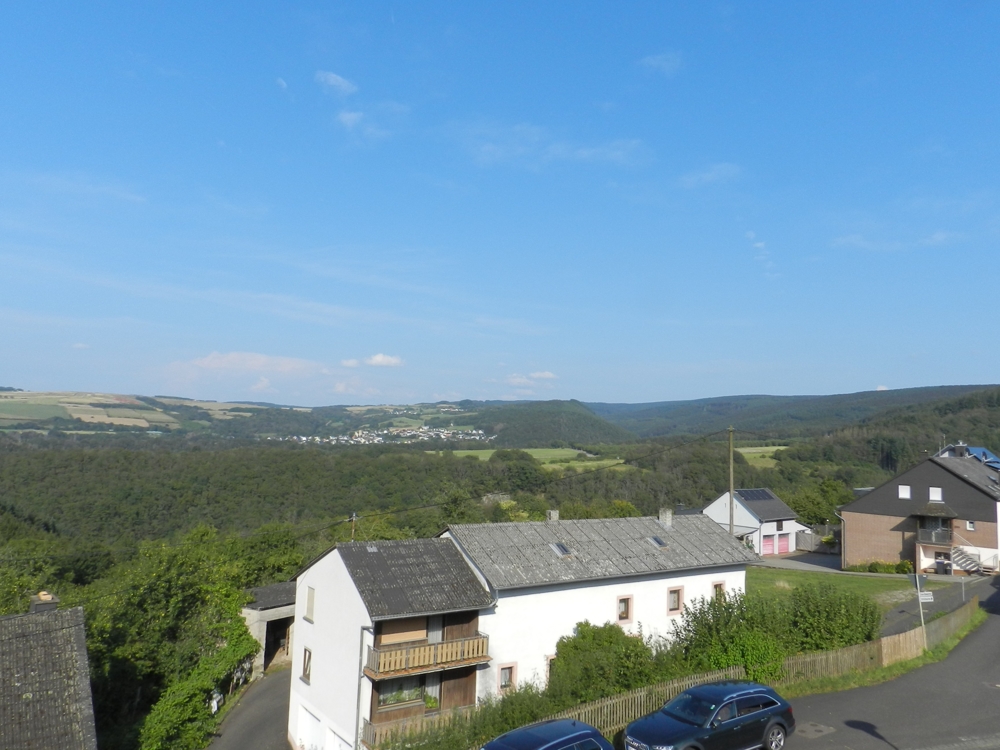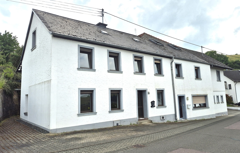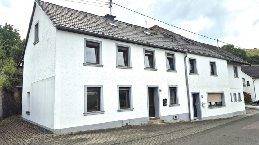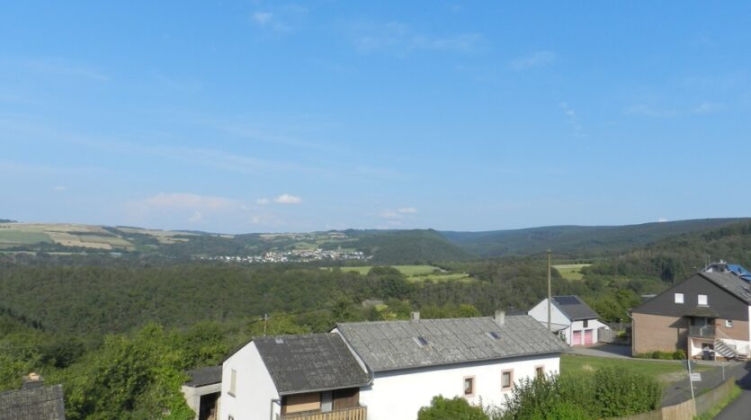 Gebouw met drie wooneenheden, garages, tuin, boomgaard/weide en een prachtig panoramisch uitzicht te koop in Ollmuth.