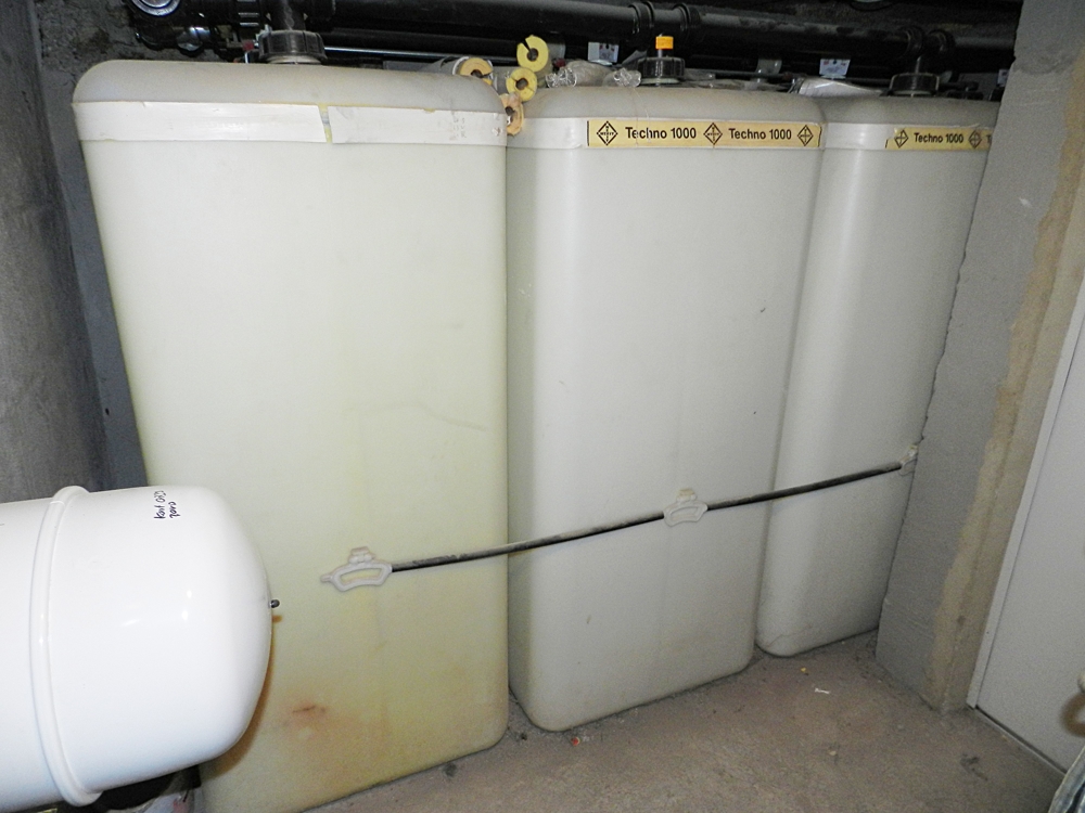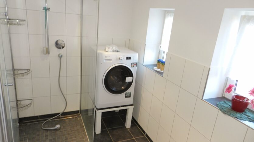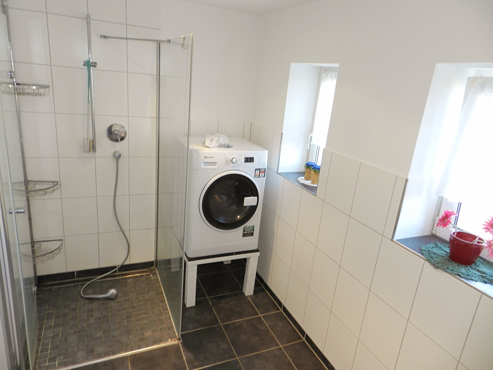 Auf Höhe der Hoffläche bzw. der Stellplätze befinden sich weitere Nutz- und Lagerflächen, die zu den verschiedenen Wohnungen zugeordnet werden können sowie der Technik- und Heizungsraum der Wohneinheit 2 mit jeweils einem Pufferspeicher für den Kachelofen (darf weiter betrieben werden) und die Solarthermie-Anlage zur Warm-Wasserbereitung. In diesem frostgeschützten Raum befinden sich ebenfalls Waschmaschine, Trockner und großer Tiefkühlschrank dieser Wohneinheit.