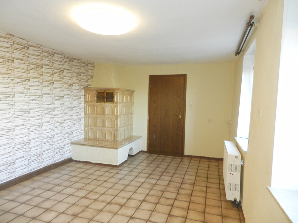 Ca. 130 m² Wohnfläche: Im Erdgeschoss befindet sich ein Wohnzimmer mit Kachelofen. Der Heizeinsatz des Kachelofens wurde 2019 bereits erneuert und entspricht den aktuellen Vorschriften.