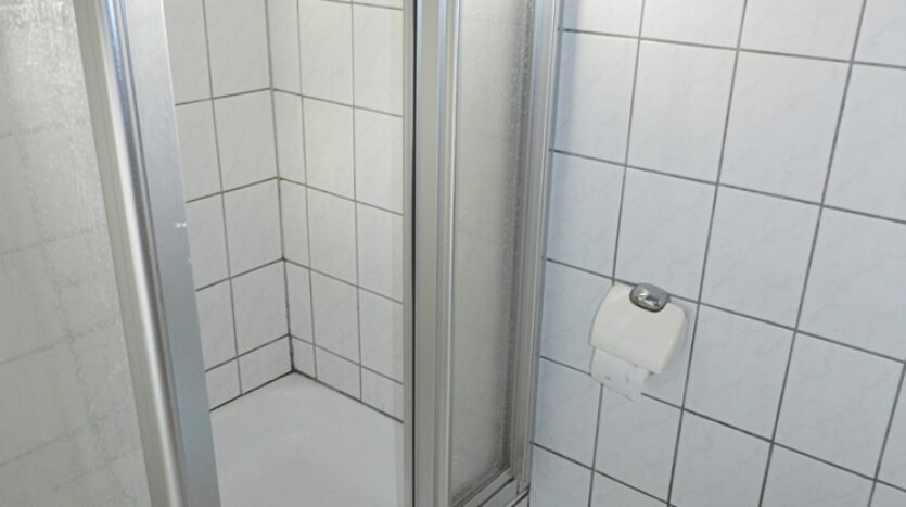 Circa 70 m² woonoppervlak. Een kleine hal leidt naar een open woon-eetkamer. Een aparte slaapkamer, een badkamer met douche en wasmachine/droger, en een gastentoilet completeren de ruimte in dit appartement. De moderne vloerverwarming wordt verzorgd door de centrale verwarming op olie van WEH 1.