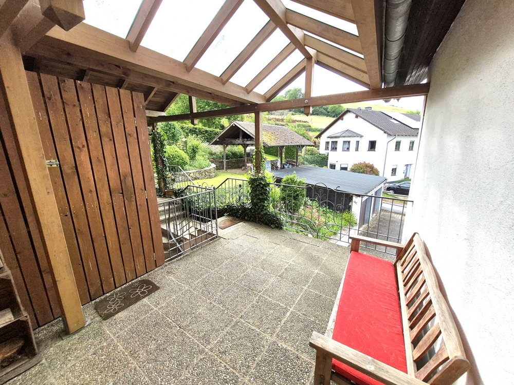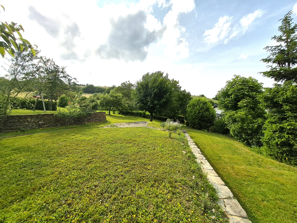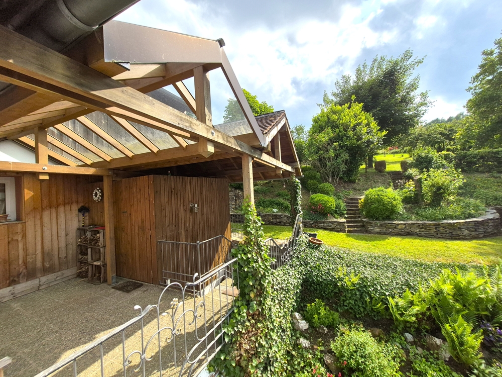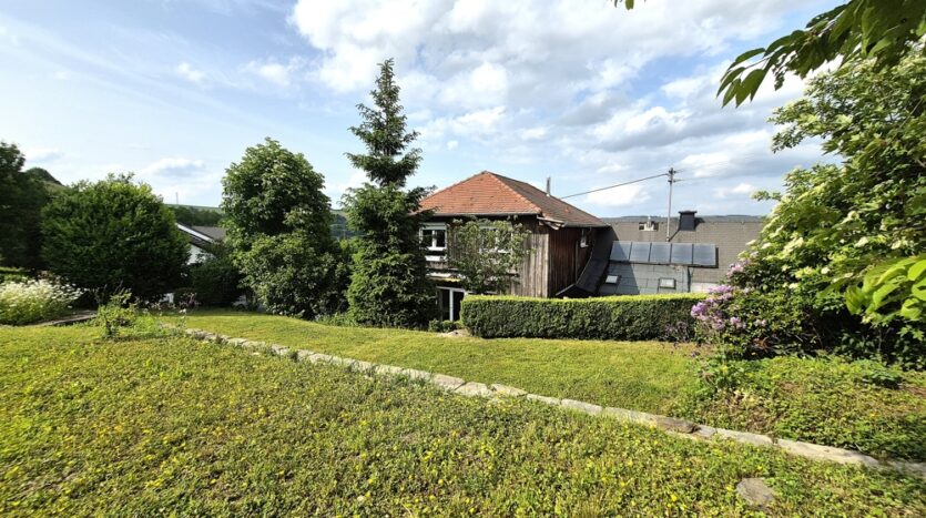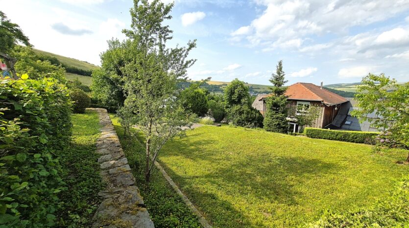 Der Garten wurde mit Schiefermauern liebevoll terrassiert und teilweise mit Terrassenplatten und Kinderspielgeräten ausgestaltet. Das Anwesen bietet Ihnen viel Platz für Kinder und Erholung.