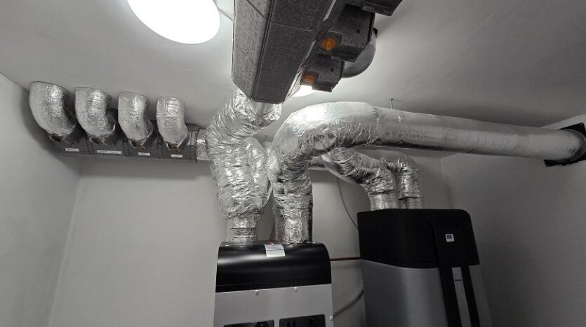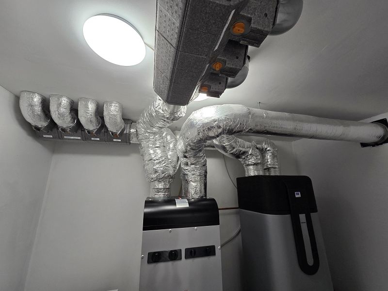 De woning beschikt over gecontroleerde ventilatie in alle woonruimtes. De elektriciteit geproduceerd door de fotovoltaïsche installatie op het dak wordt gedeeltelijk gebufferd door de bestaande batterijopslag. De lopende energiekosten worden hierdoor tot een minimum beperkt.