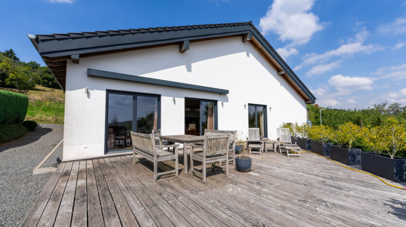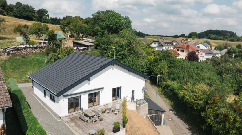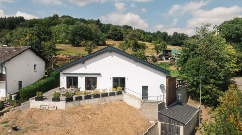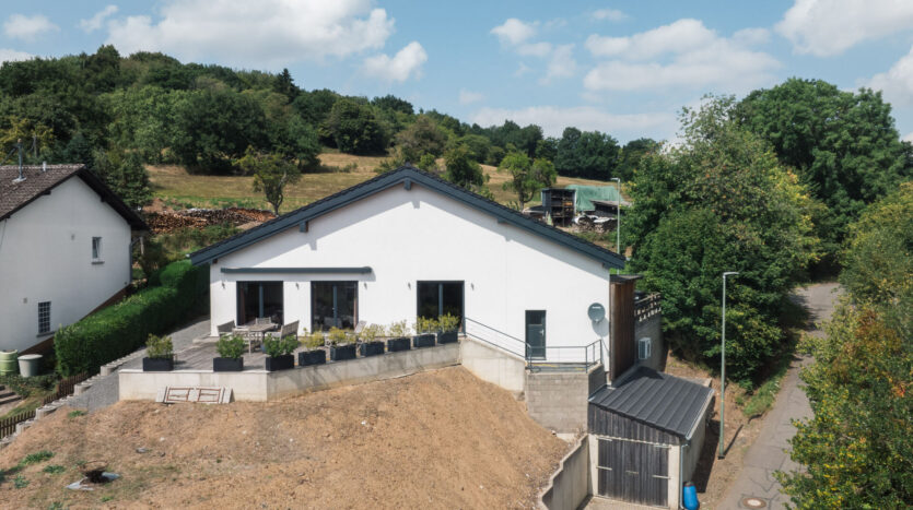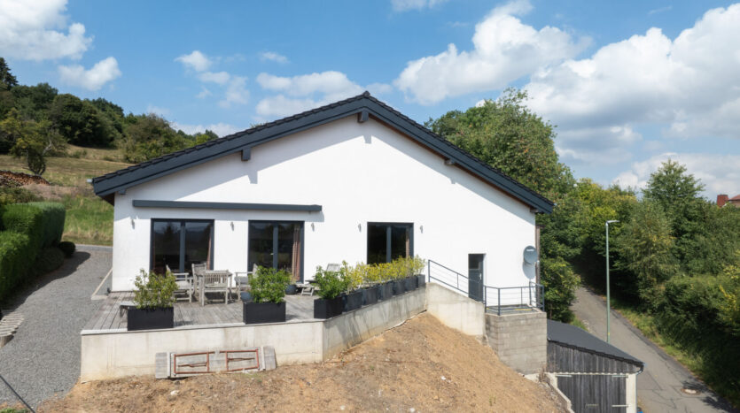 Een gloednieuwe vrijstaande woning (bungalow) op een panoramische, vrije locatie in de gemeente Üdersdorf staat te koop.