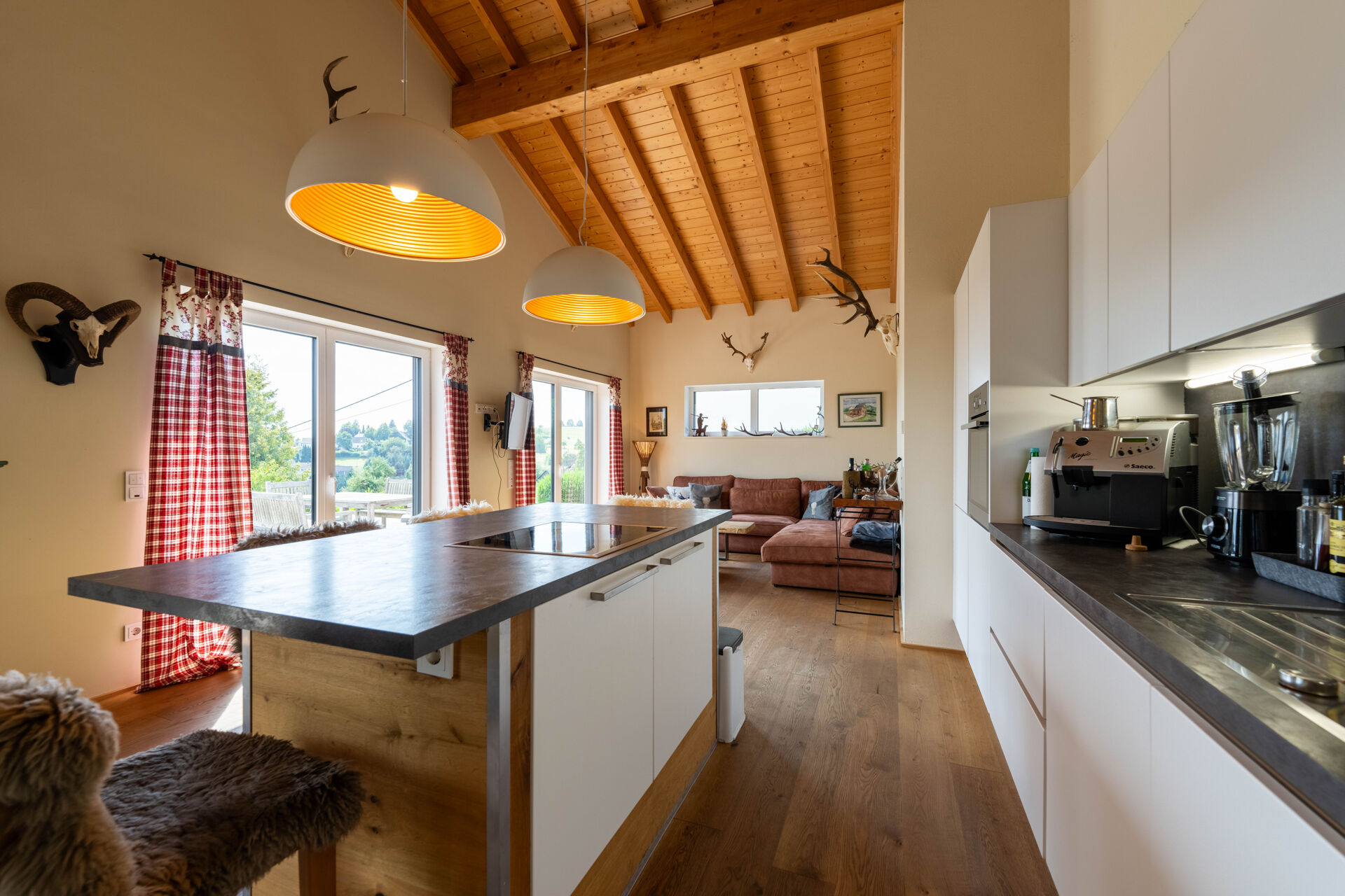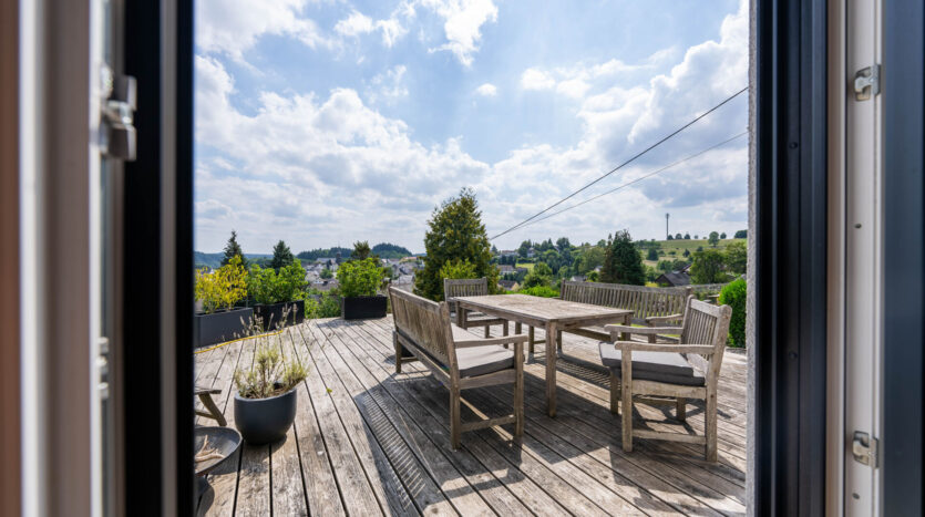 De ruime woon- en eetkamer geeft toegang tot het ruime terras, vanwaar u kunt genieten van het prachtige uitzicht. De extra galerij biedt diverse gebruiksmogelijkheden – of het nu gaat om een werkruimte, galerij of rustruimte.