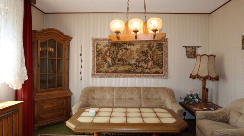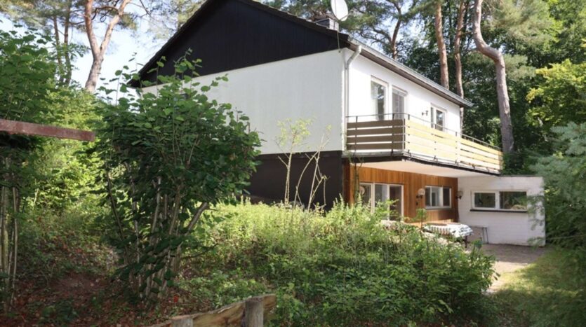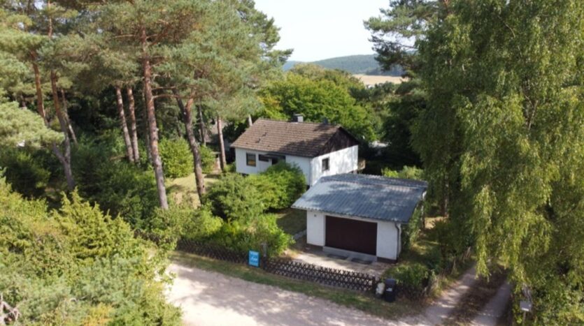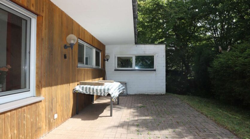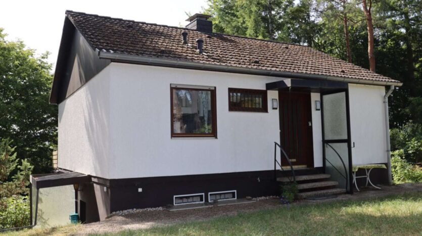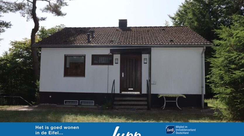 Deze prachtige vrijstaande woning werd in 1972 gebouwd als prefabwoning met een solide kelder in het weekendhuisgebied “In der Lay”, verscholen in het bos boven Niederehe. Het weekendhuisgebied ligt in het hart van het natuurreservaat “Boven-Kyl- en Kalksteenbekkens van de Noord-Eifel” en maakt deel uit van het natuurpark Vulkaaneifel.