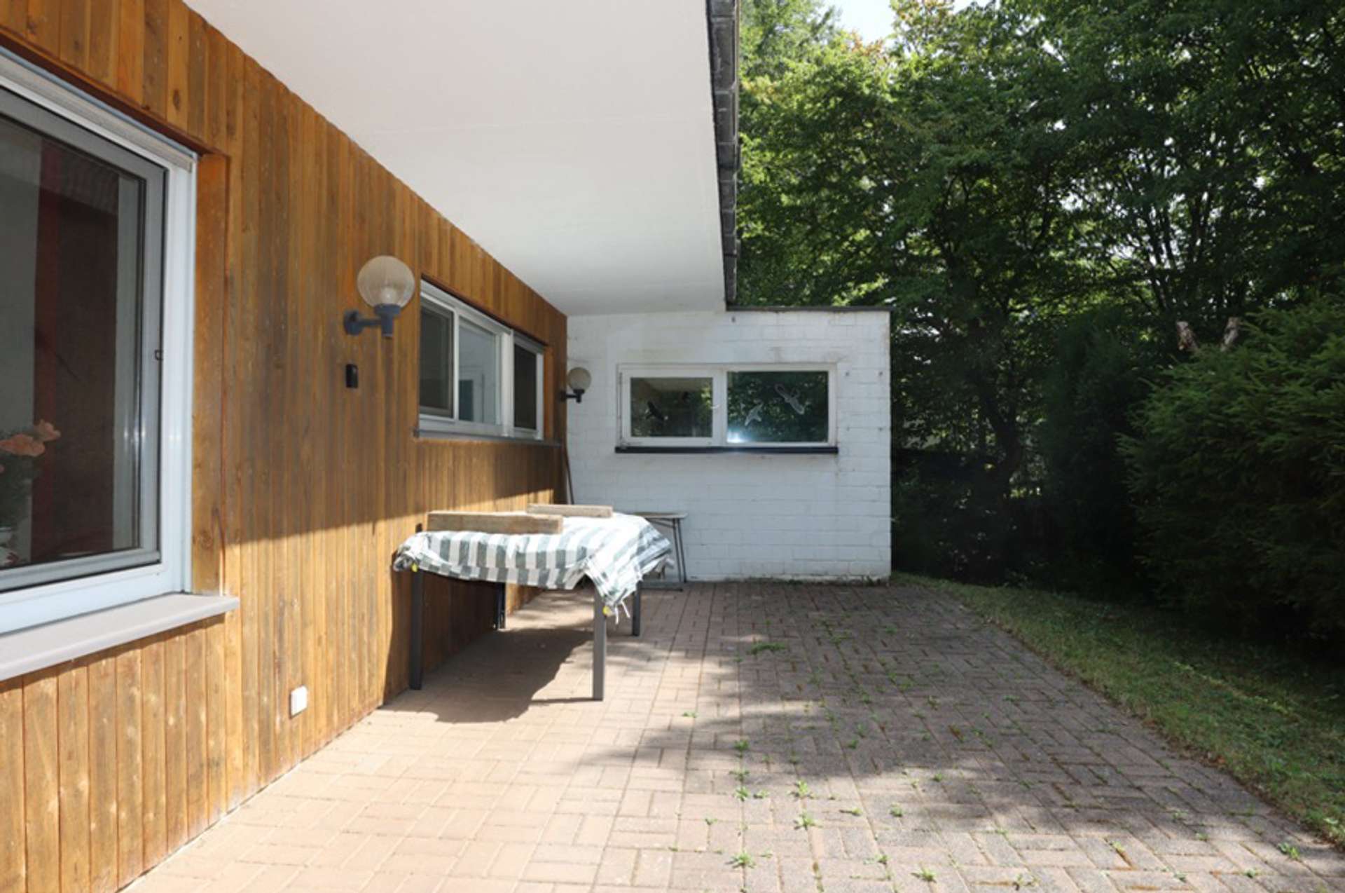 Het perceel is 1.169 m² groot en prachtig gelegen in het bos. Vanaf het balkon heeft u een prachtig uitzicht over het Niedereher Bachtal. Hier kunt u vossen en hazen welterusten zeggen, genieten van de heerlijke rust en gewekt worden door het gezang van de ochtendvogels. Natuurliefhebbers en rustzoekers vinden hier hun favoriete plekje. Tuinliefhebbers kunnen hier hun eigen tuinparadijs creëren.