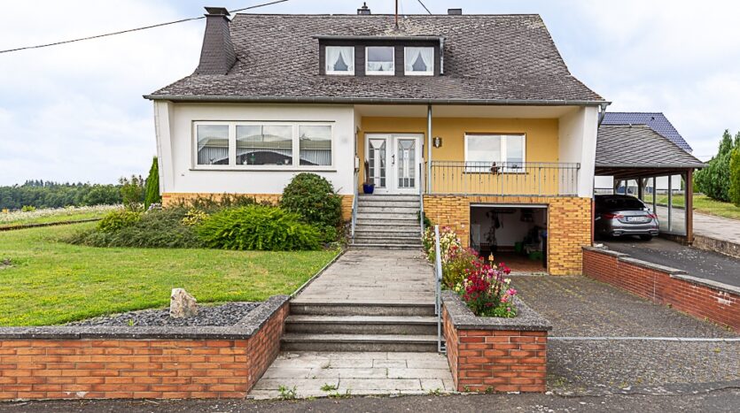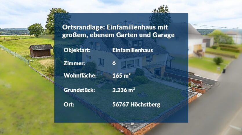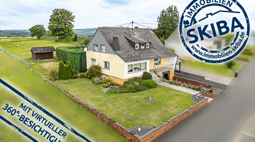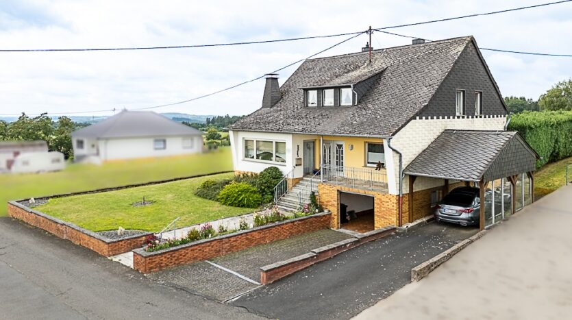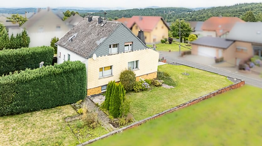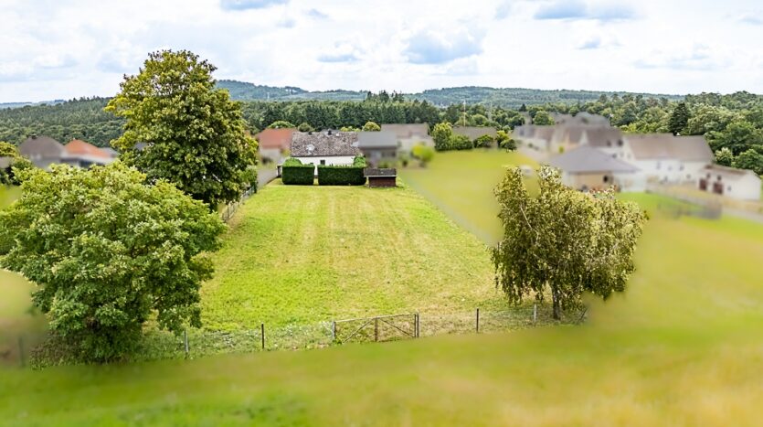 Dorpsrand: Vrijstaande woning met grote, vlakke tuin en garage te koop in de Vulkaaneifel, nabij Ulmen.