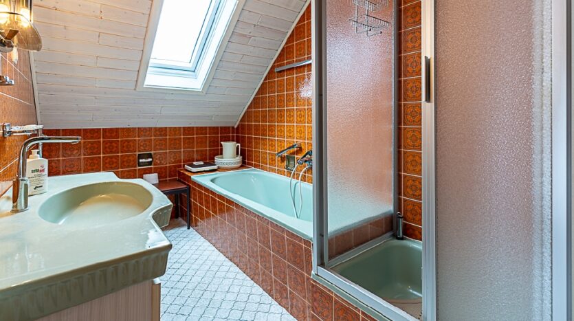 Flur, zwei Schlafzimmer, Badezimmer mit Dusche/Badewanne/WC/Dachfenster, weiteres Schlafzimmer mit dahinterliegendem Zimmer mit Küchenanschlüssen