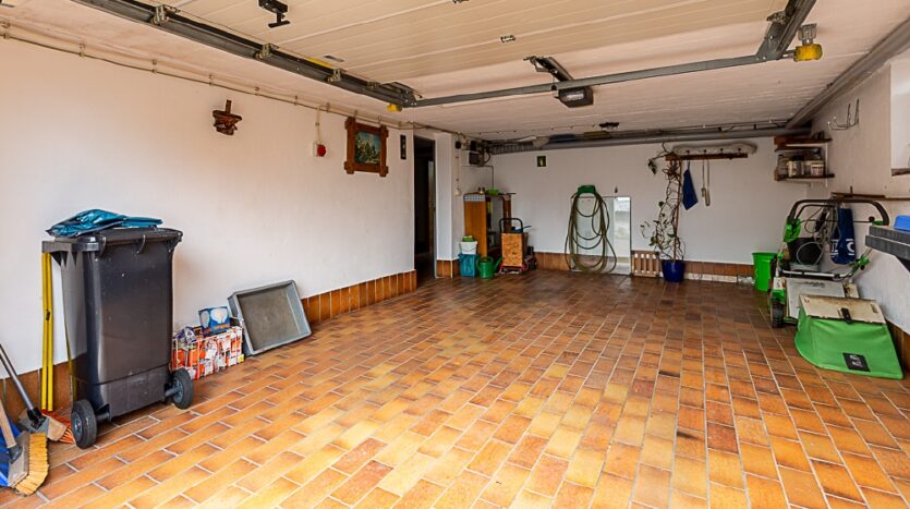 Inpandige garage met toegang tot de woning, hal, wasruimte met douche/toilet en uitgang naar de tuin, berging, stookruimte en olieopslag