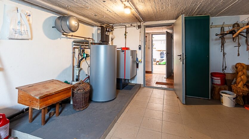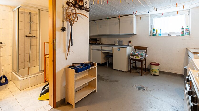 Innengarage mit Zugang ins Haus, Flur, Waschküche mit Dusche/WC und mit Ausgang in den Garten, Abstellkeller, Heizungskeller und Öllager