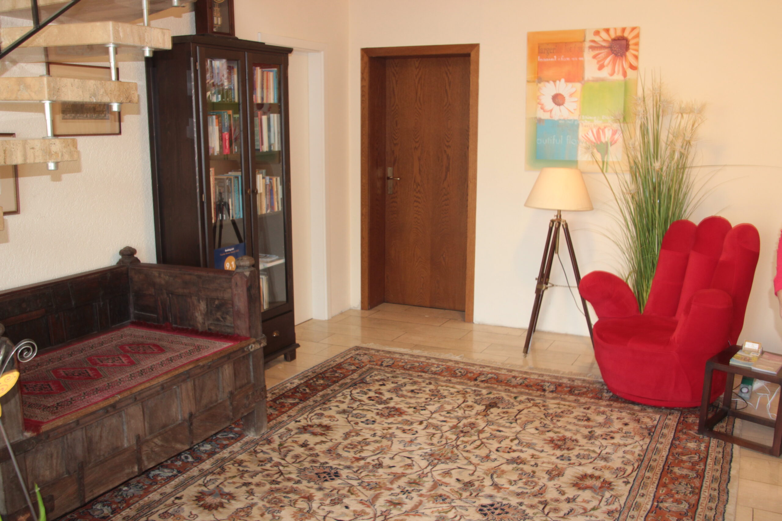 Het woongedeelte heeft een grote woonkamer met open haard en toegang tot het kantoor, aangrenzende keuken/eetkamer met uitzicht op de Moezel. Op dit niveau bevindt zich ook een badkamer, de slaapkamer en de bijkeuken. Een saunagedeelte van 18 vierkante meter en extra gastenkamers ronden het privégedeelte van het huis af.
