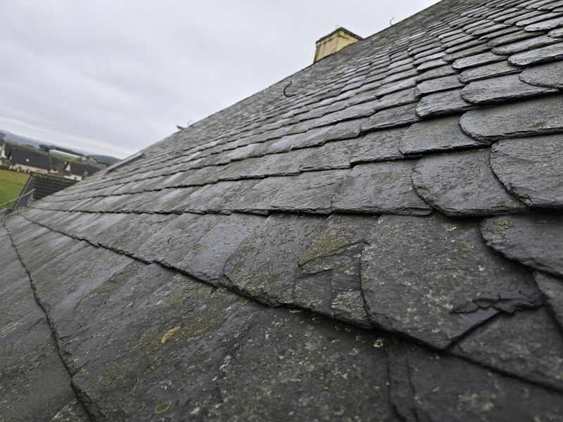 Links is de woning uitgebreid met een grote uitbouw met een trapeziumvormig plaatstalen dak. De gehele ruimte wordt gebruikt als bergruimte. Achter deze uitbouw bevindt zich een terras met een kleine veranda. Vanuit hier heeft u ook toegang tot de tuin en het gehele perceel. Het perceel is aangelegd met talrijke bomen, hagen, struiken en grassen en biedt veel privacy.