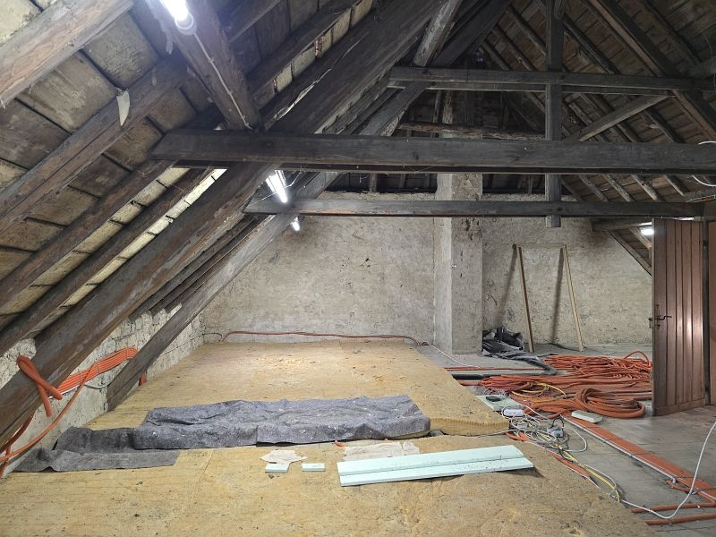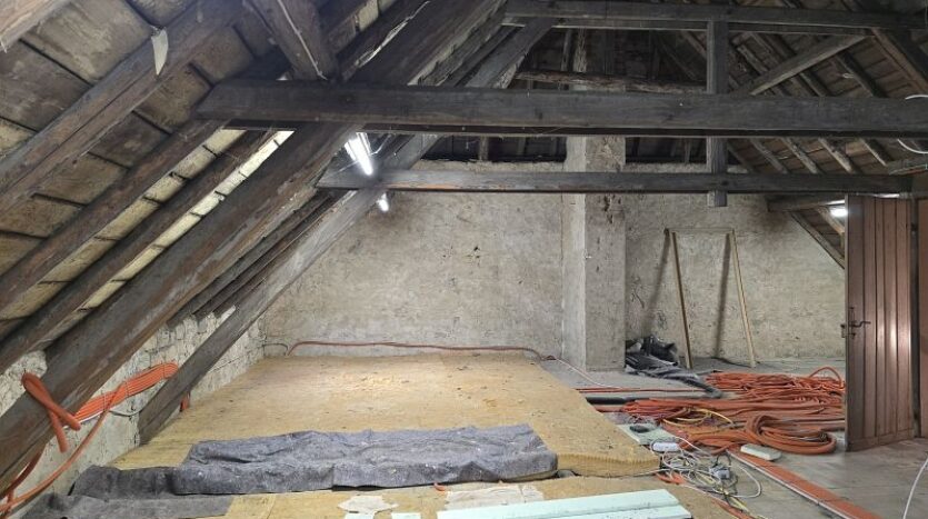 Über eine weitere Treppe erreicht man den Dachstuhl. Der gesamte Speicher kann als Abstell- und Lagerfläche genutzt werden.