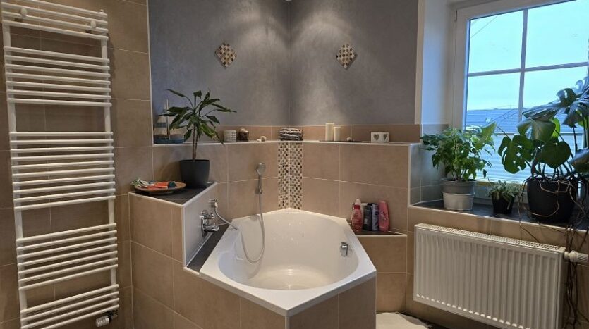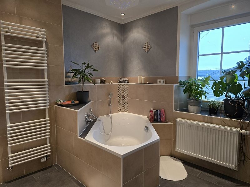 Die Warmwasserversorgung läuft über die Zentralheizung und wird kostengünstig durch eine Solaranlage unterstützt.