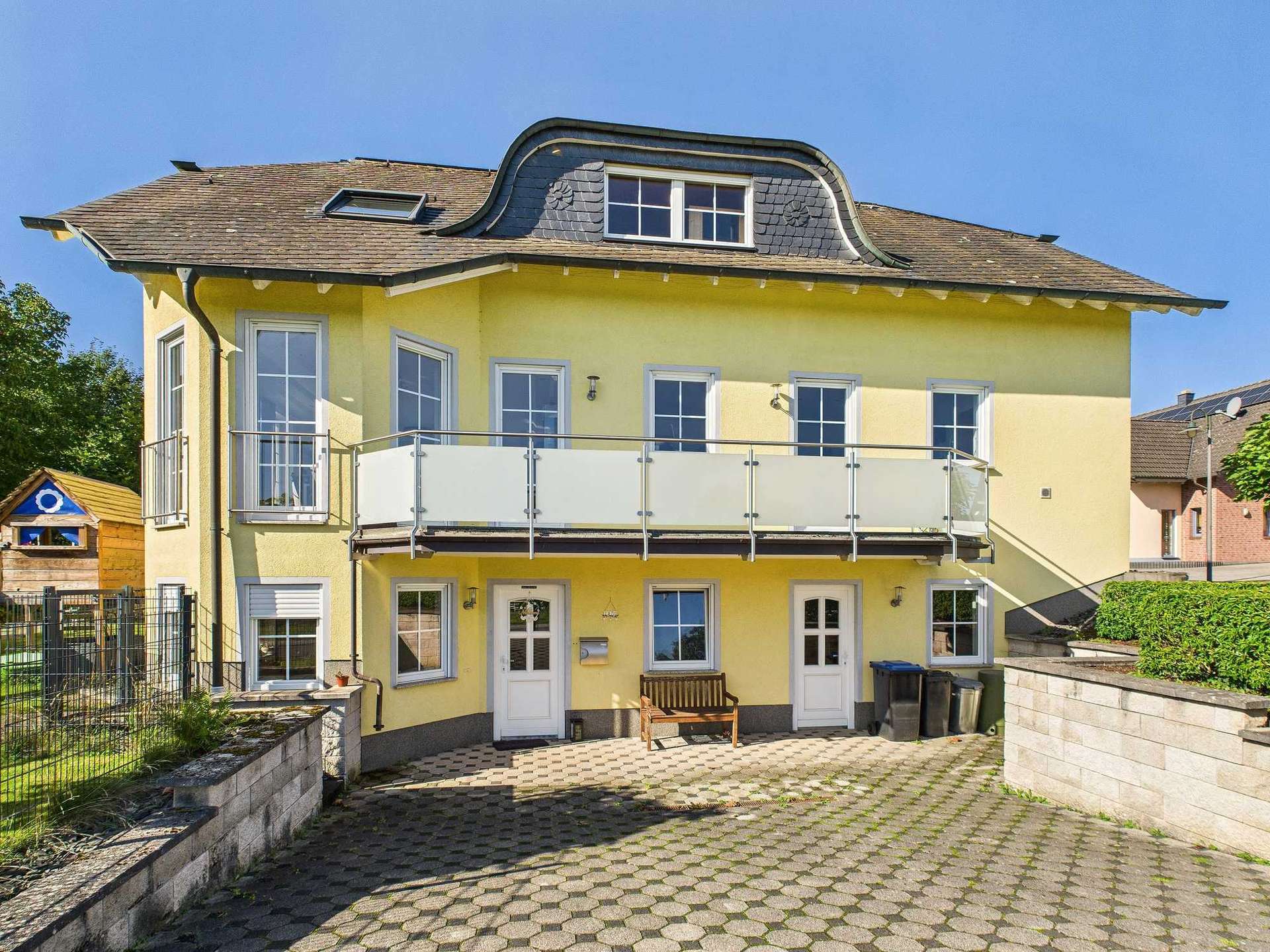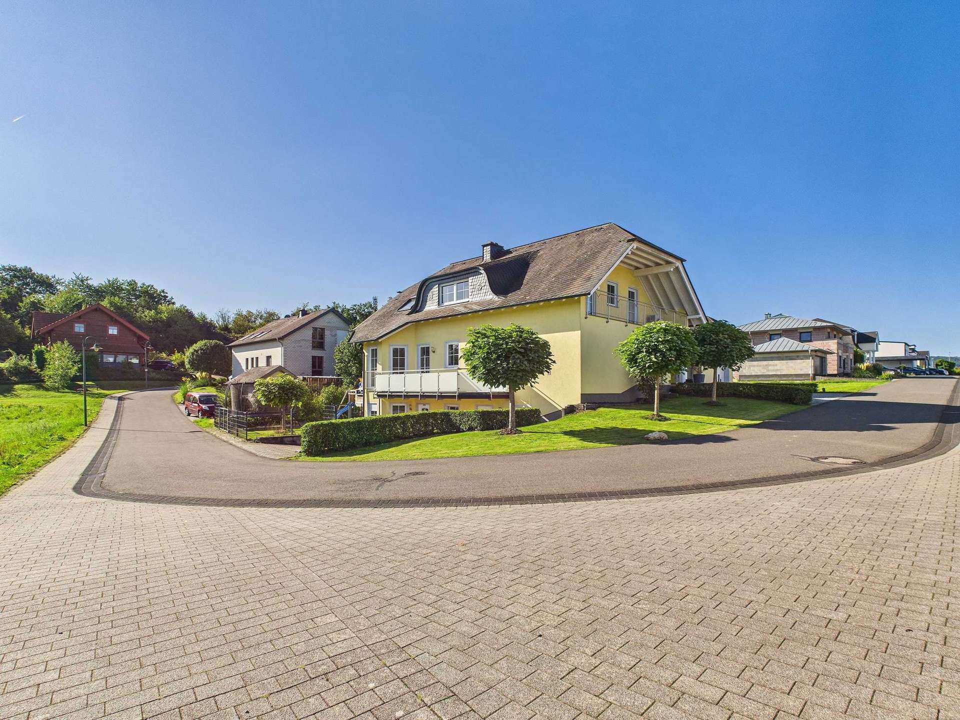 + Hochwertige Bauausführung mit beispielsweise Naturschieferdach, Kupferregenrinnen und Granitböden