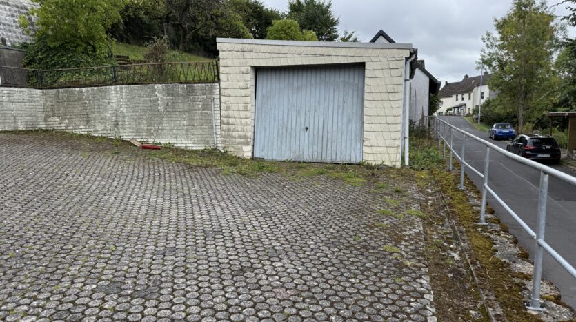 PKW-Garage; befestigte Hoffläche; Abstellraum sowie das Garten-/Wiesengrundstück