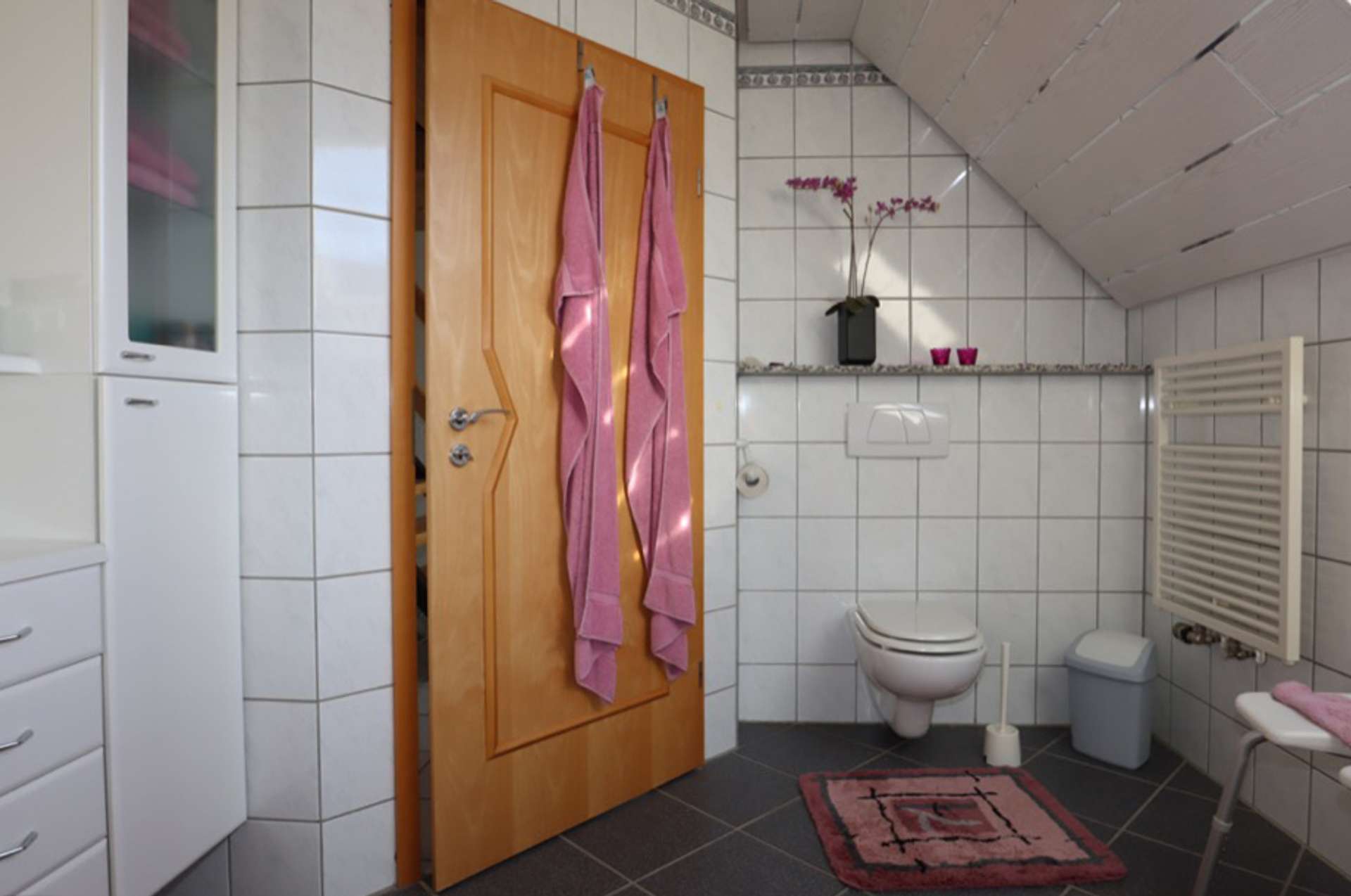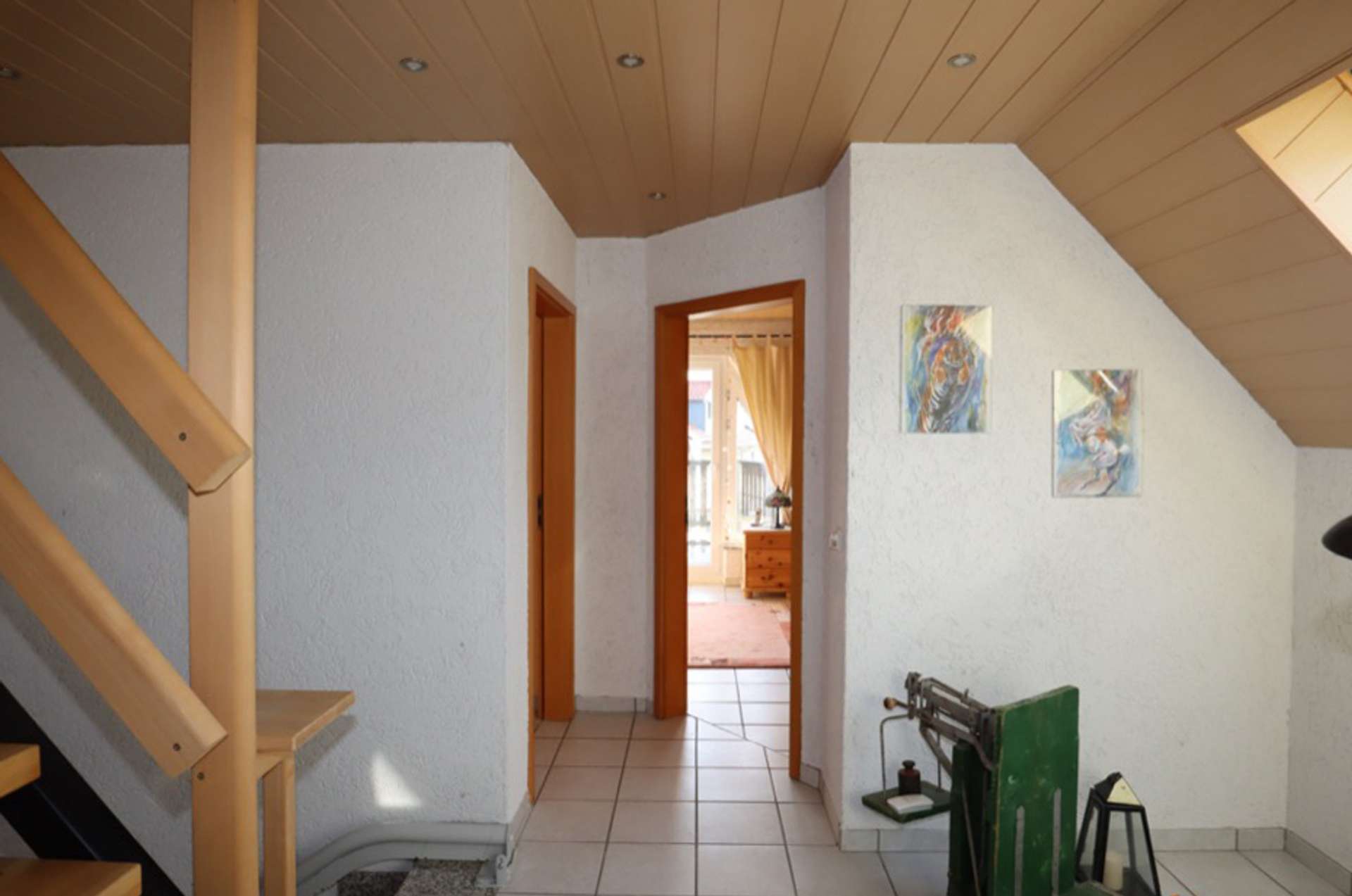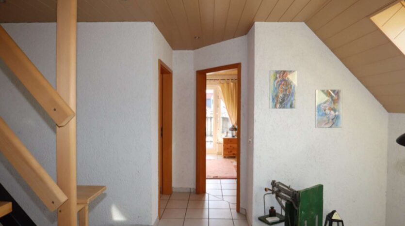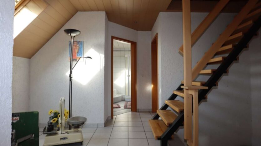 Dachgeschoss: Treppe/ Diele, 3 Schlafzimmer, davon 2 mit Zugang zur Dachterrasse, Bad mit Dusche, Badewanne und WC