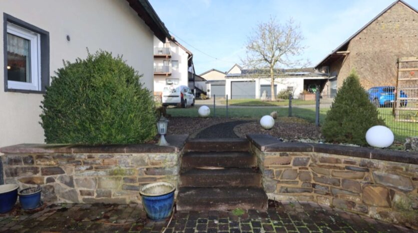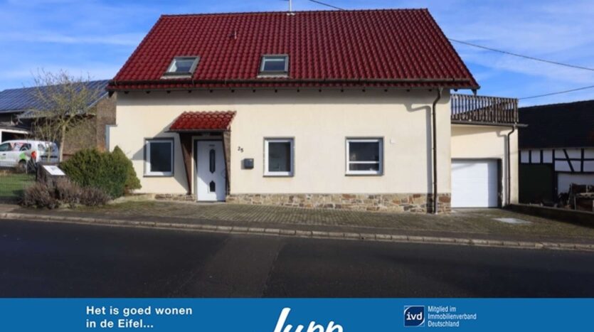 Schattige eengezinswoning met klein, onderhoudsvriendelijk perceel en garage te koop in Bongard in het natuurpark Vulkaaneifel.
