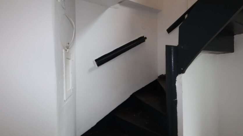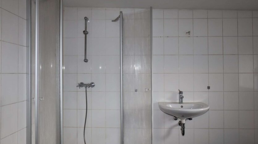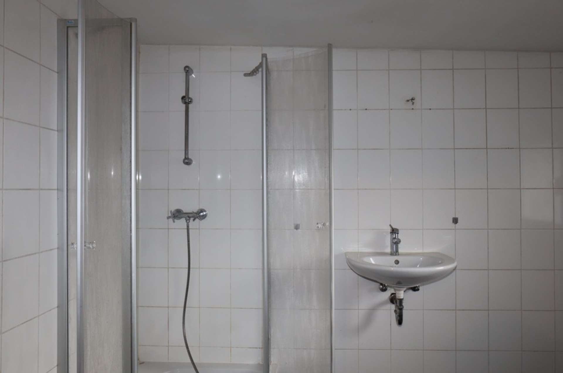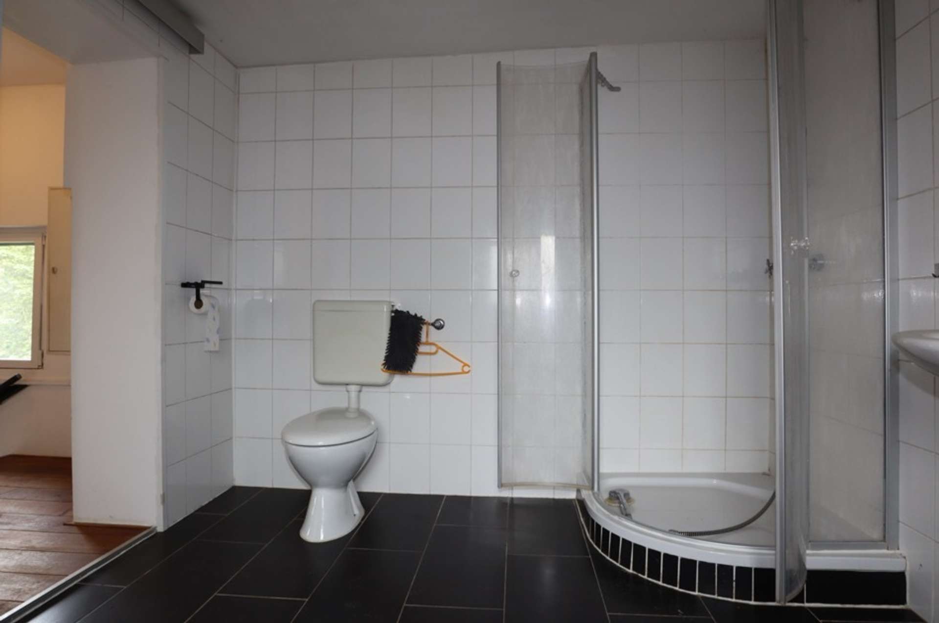 Bovenverdieping: hal, badkamer met douche en toilet, woon-/slaapkamer.