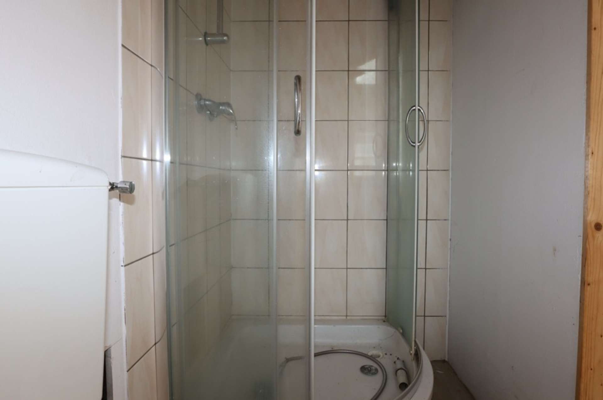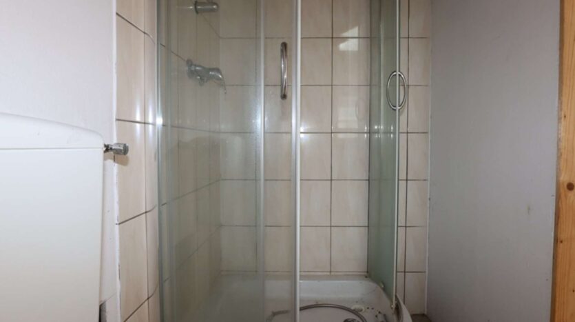 Obergeschoss: Diele, Bad mit Dusche und WC, Wohn-/ Schlafzimmer.