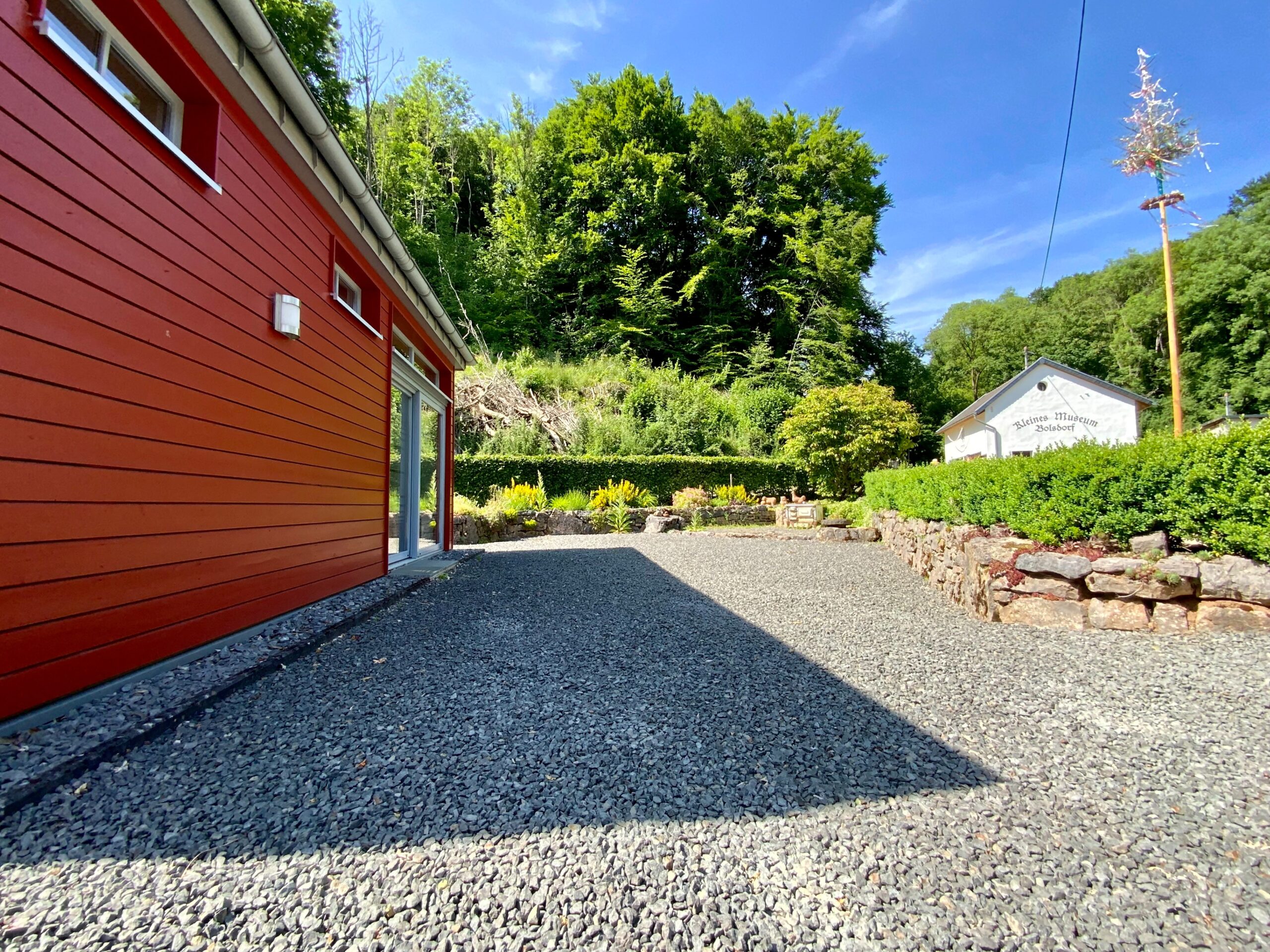 Deze zeer interessante woning is gunstig gelegen, grenzend aan een prachtig bosrijk gebied. Zonder doorgaand verkeer is het er zeer rustig in de kleine gemeenschap Bolsdorf met circa 213 inwoners. Direct grenzend, op ongeveer 3 km afstand, ligt Hillesheim met circa 3140 inwoners. Hillesheim is een historisch interessante stad in het westen van Rijnland-Palts in het natuurpark Vulkaan-Eifel en aan de deelstaatgrens met Noordrijn-Westfalen. Hillesheim ligt ongeveer halverwege de grote steden Keulen en Trier en op slechts ongeveer 30 km van de Belgische grens.