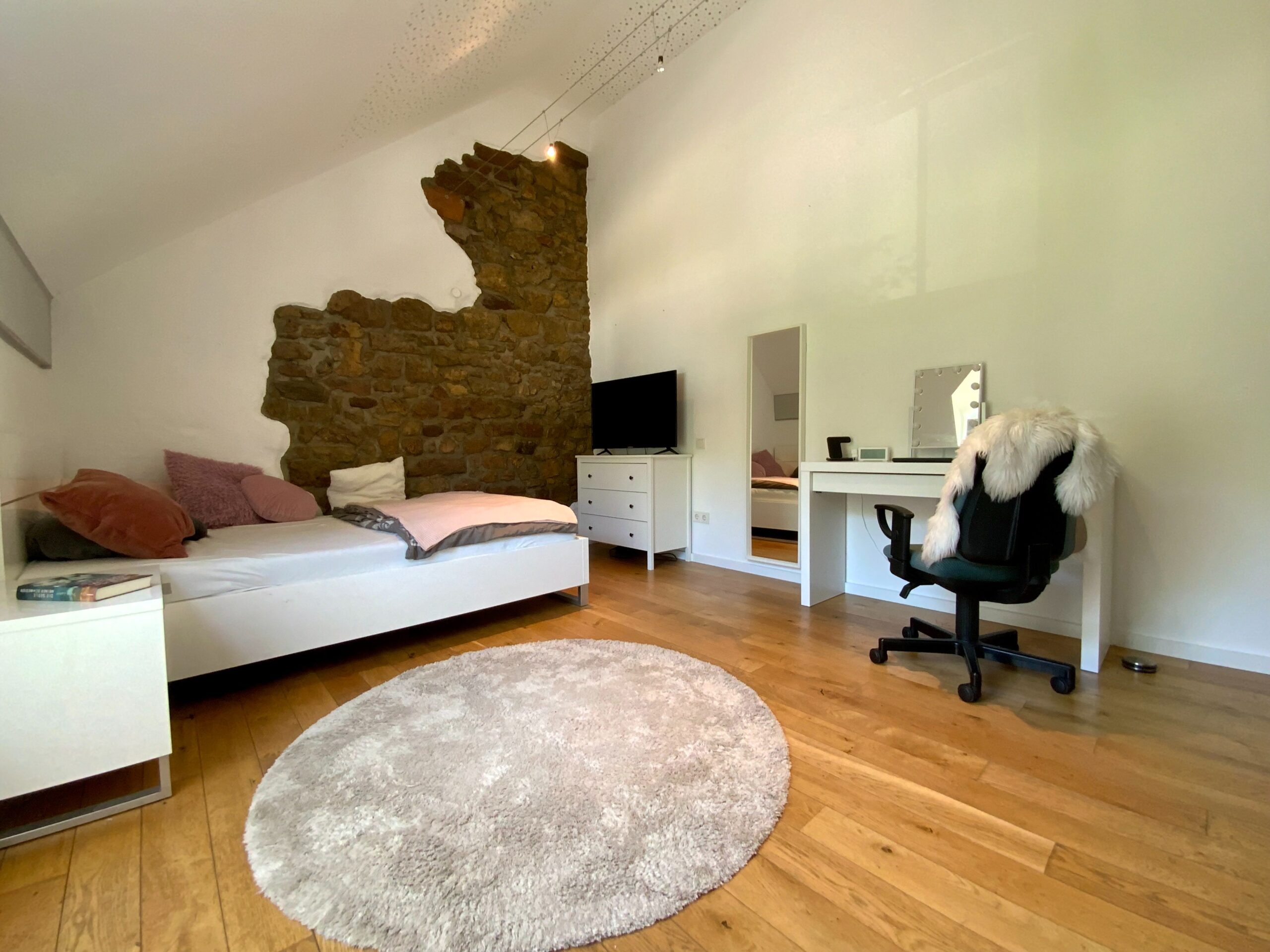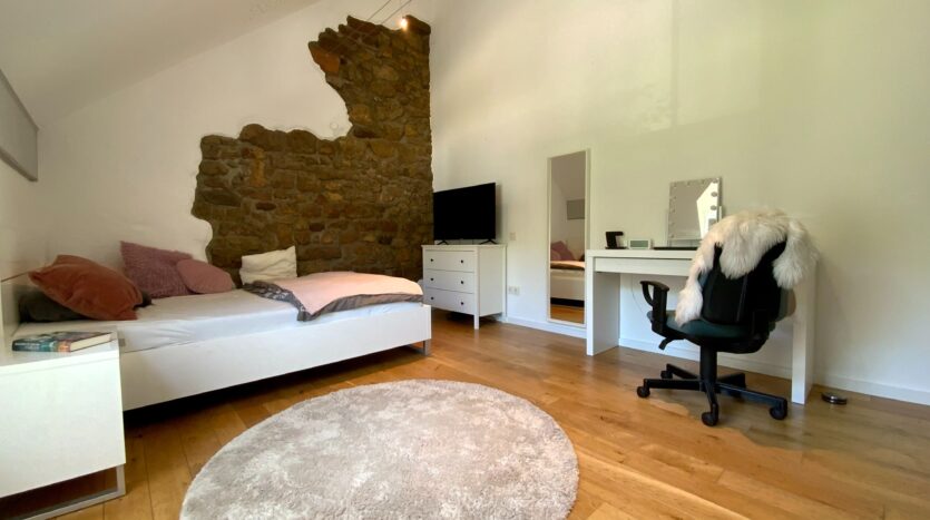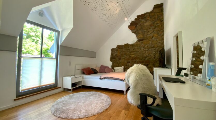 Das Haus wurde im Jahr 2005 in Massiv- und Holzständerbauweise errichtet und vereint moderne Architektur mit hochwertiger Bauausführung. Im Bereich des Bruchsteinbaus wurden die historischen Steine freigelegt und sichtbar gemacht – ein charmantes Detail mit viel Charakter.