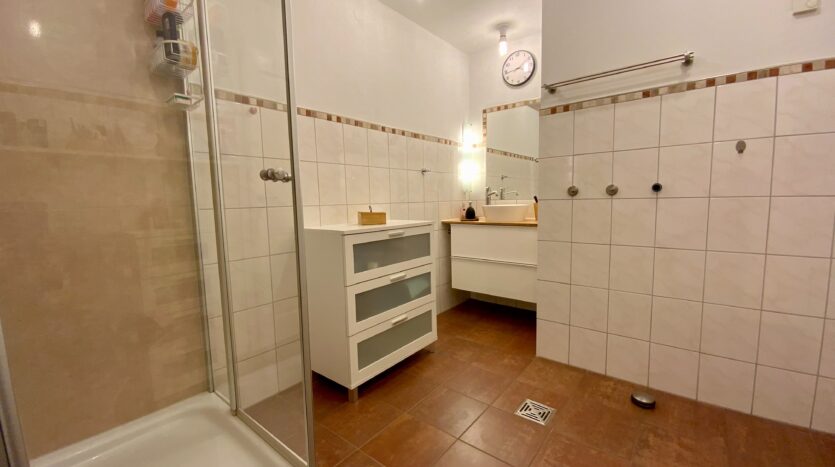 Terug in de hal loopt u rechtdoor naar de badkamer en de wasruimte.