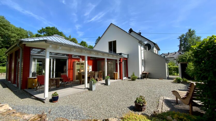 Een unieke, energiezuinige woning op topconditie – een smaakvol gemeubileerd huis in een prachtige bosrijke omgeving in het Bolsdorfertal nabij Hillesheim.